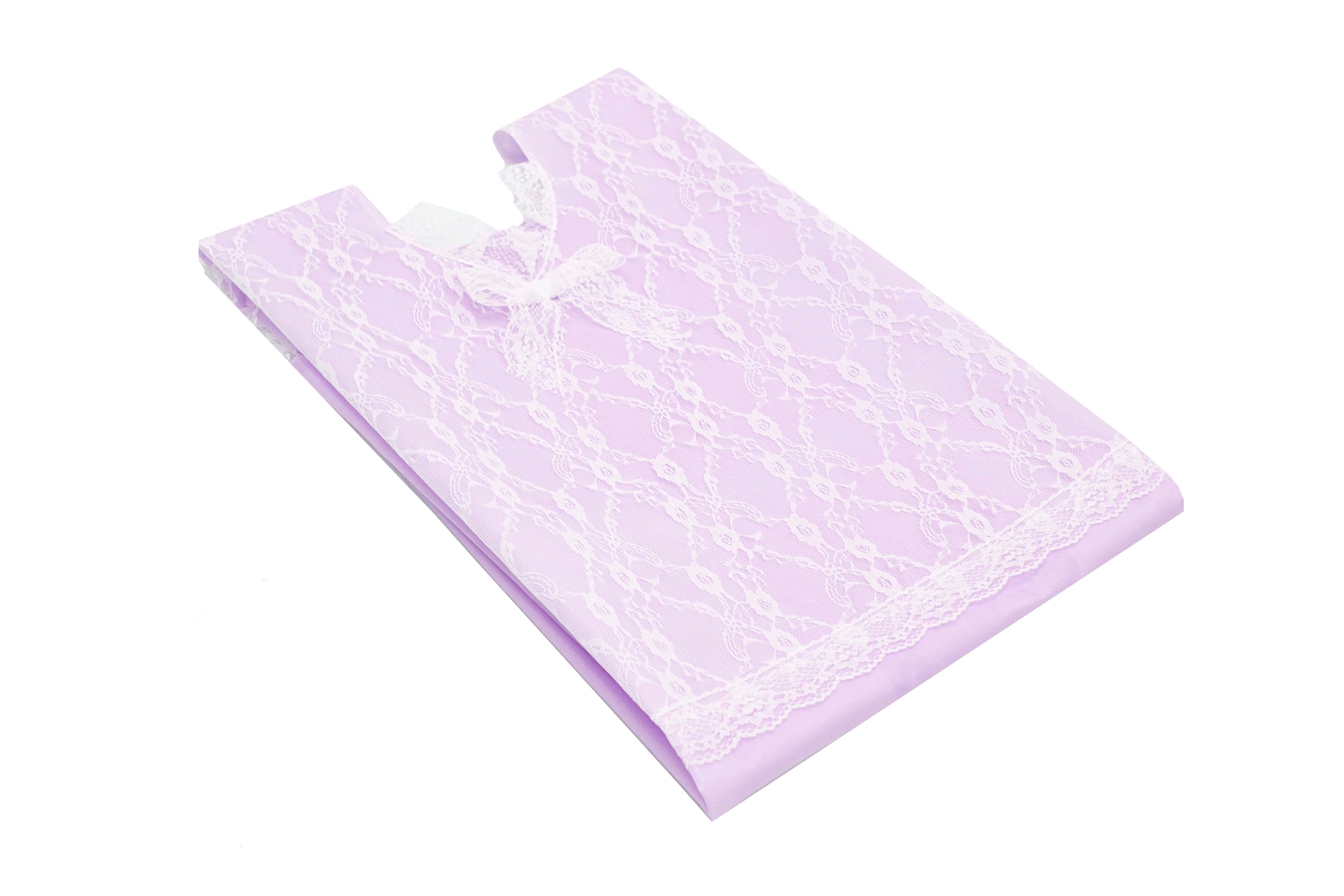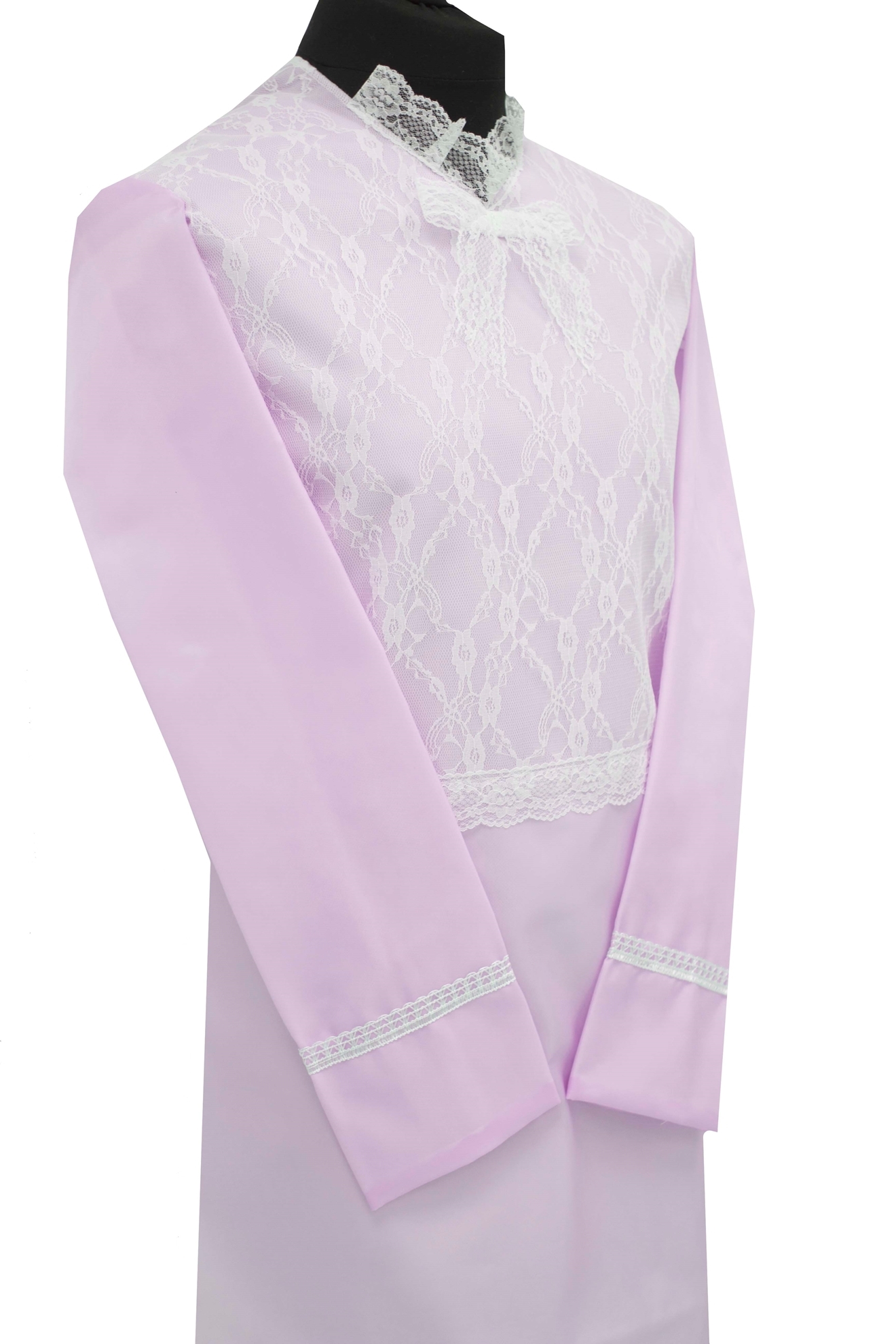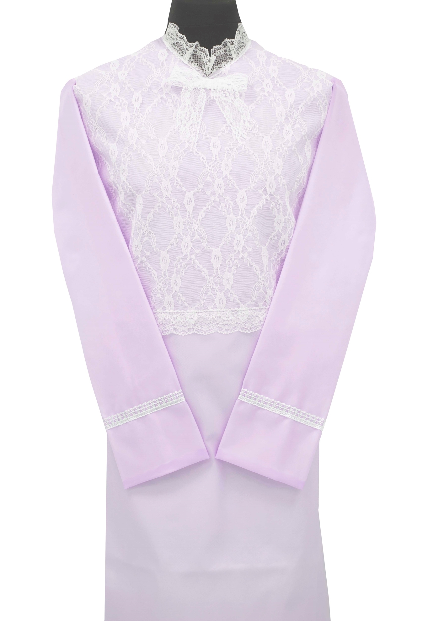 Taffeta 115 Gown with Lace Front.  Available in: Blue, Cream, Peach, Pink, Rosebud and White with an option of a 9" or 12" Frill.
