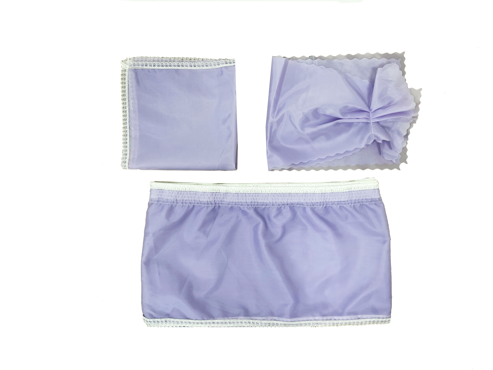 Taffeta Drapery Set consisting of a 12" frill, curtain piece and a facecloth. The main use for a drapery set is for dressing the coffin when the deceased is in their own clothes.