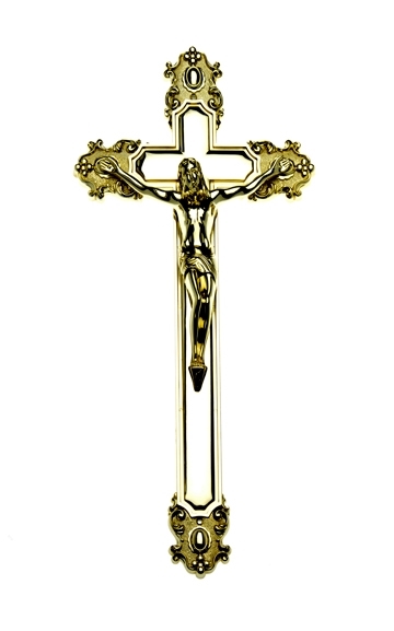 Plastic 18" Spanish Crucifix. Available in Brass or Nickel finish.