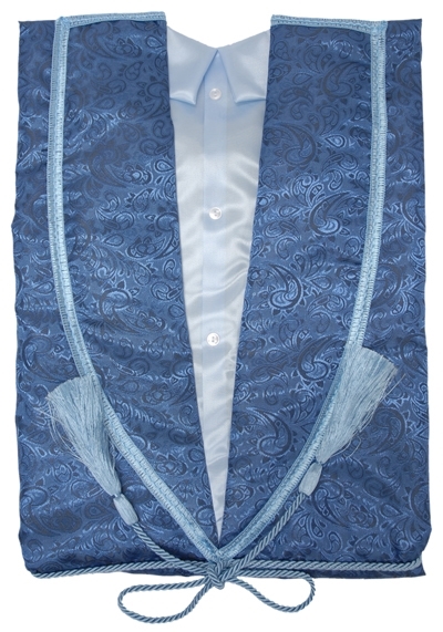 Male Paisley Gown.  Available in Blue, Burgundy, Cream, Navy Blue and Oyster with an option of a 9" or 12" Frill.