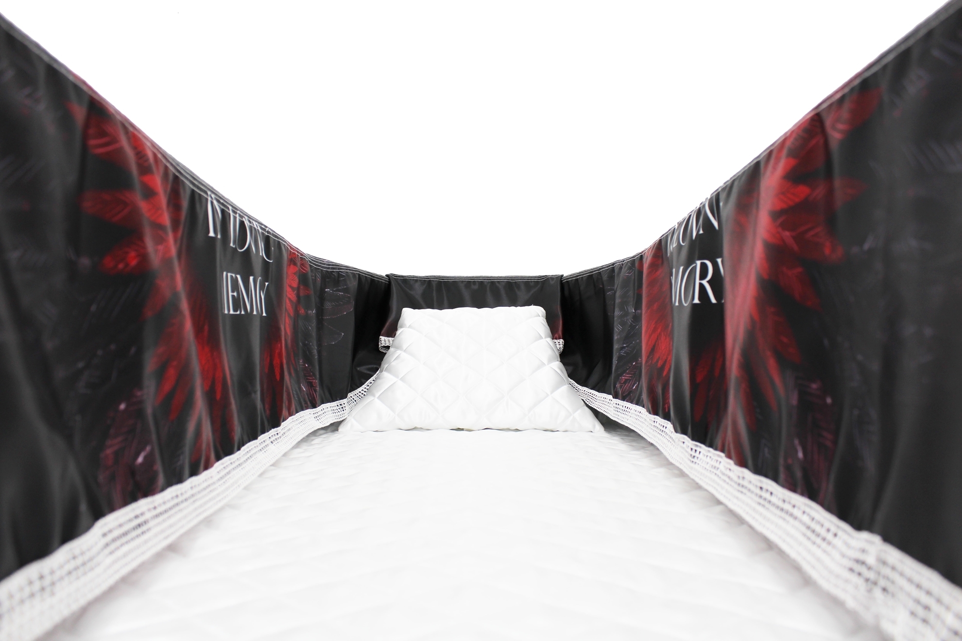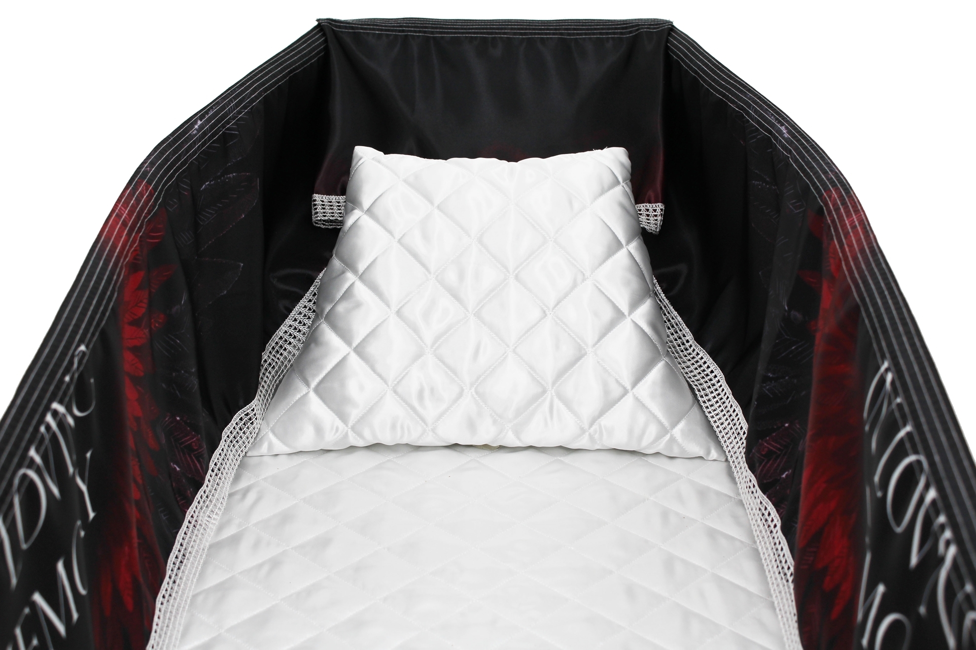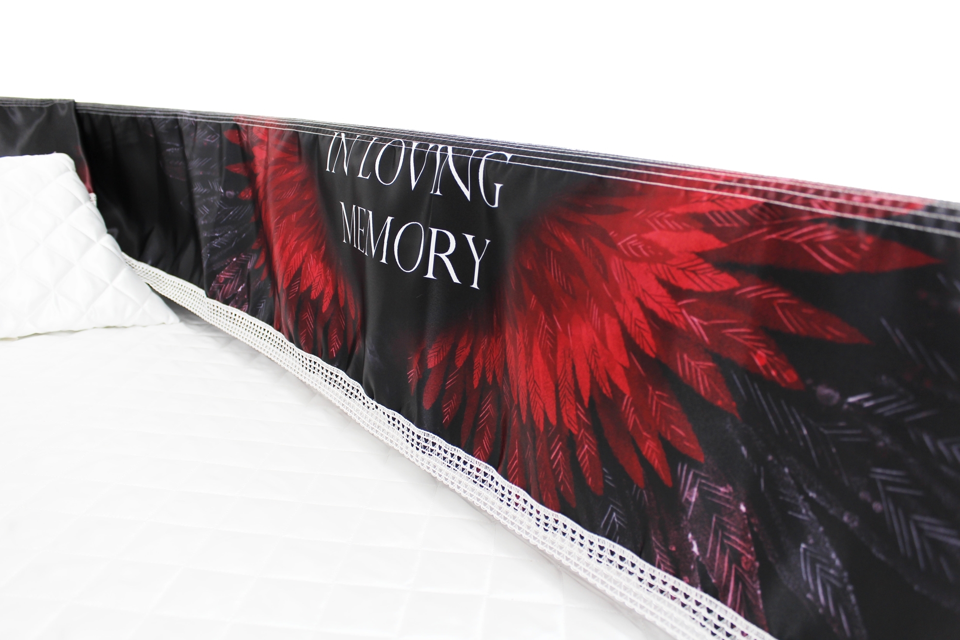 12-inch Printed Satin frill to be attached to the lip of the coffin/casket. Please note the image shows a mattress and pillow which are NOT included.