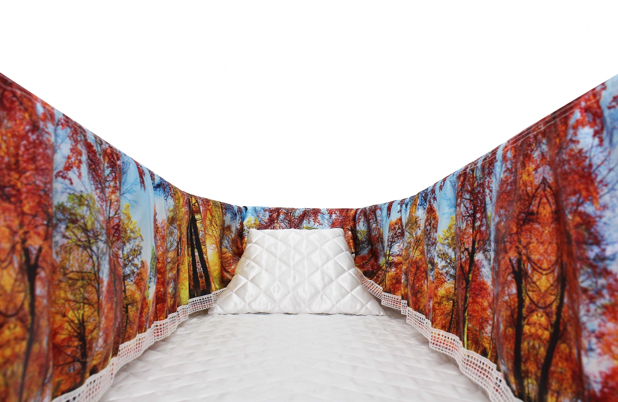12-inch Printed Satin frill to be attached to the lip of the coffin/casket. Please note the image shows a mattress and pillow which are NOT included.