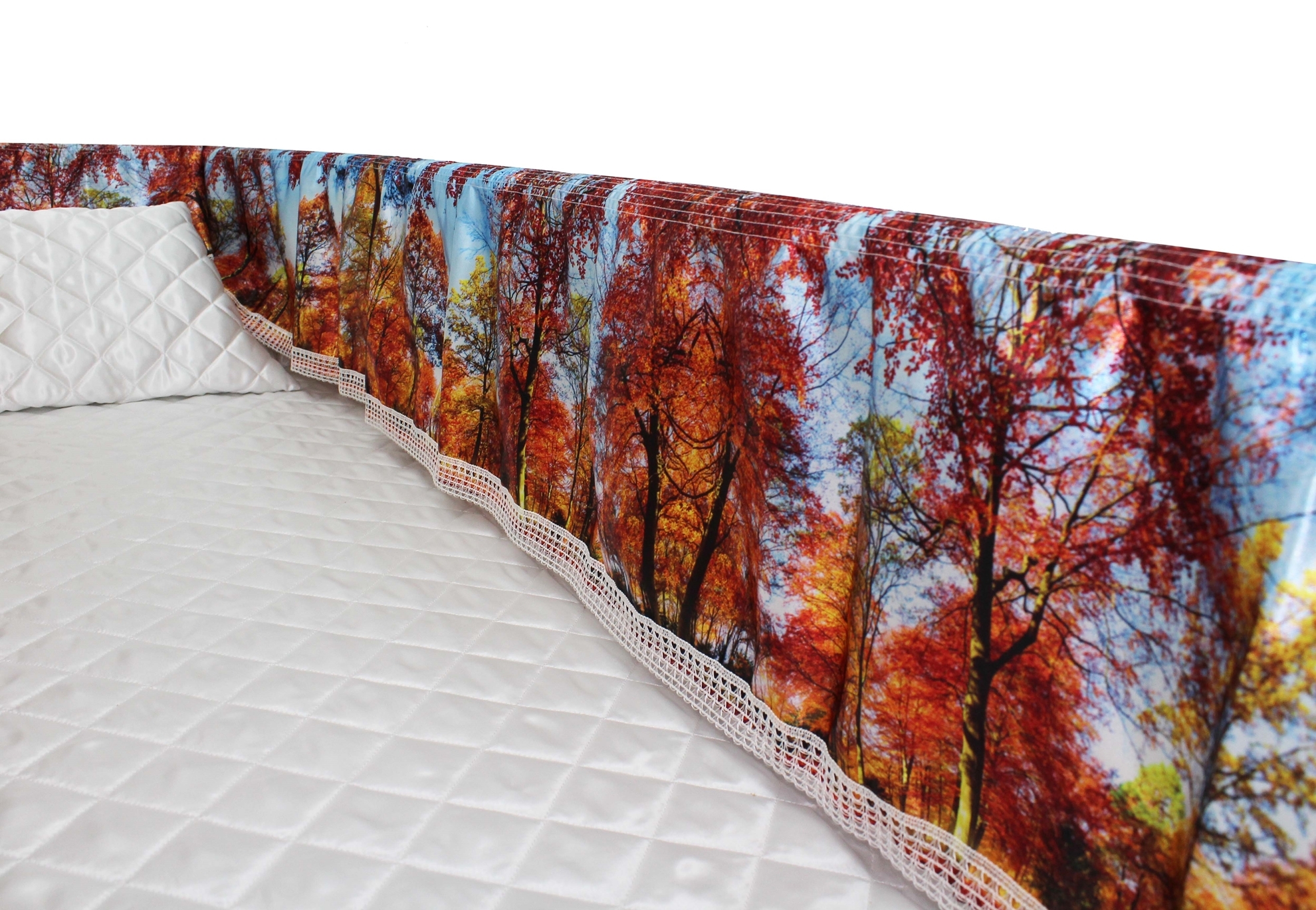 Luxury Satin 18-inch 2-way frill consisting of a 12-inch internal frill with an additional 6-inch exterior frill. The chosen design will be printed on the 18" 2-Way Frill. Please note the image shows a mattress and a pillow which are NOT included. Image is to illustrate style of Interior Only.