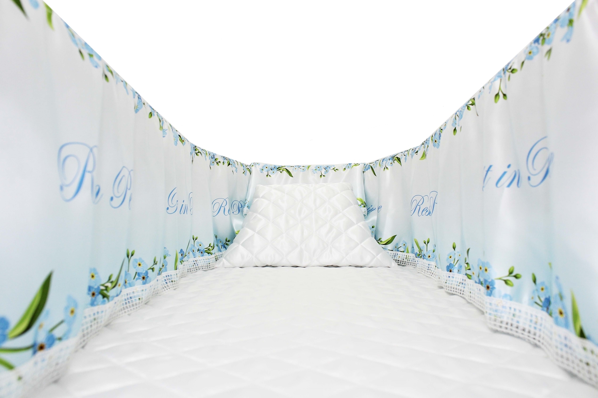 12-inch Printed Satin frill to be attached to the lip of the coffin/casket. Please note the image shows a mattress and pillow which are NOT included.