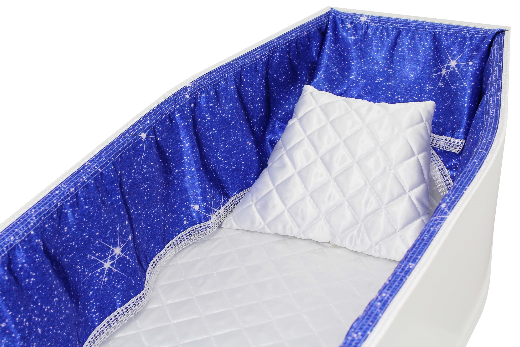 Luxury satin interior printed using water-based ink. The printed interior set consists of a 18-inch 2 Way printed satin frill, printed satin facecloth, quilted satin pillow and a quilted satin mattress.The chosen design will be printed on the interior. Image is to illustrate style of Interior Only.