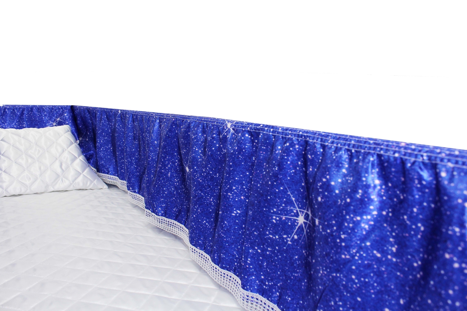 Luxury Satin 18-inch 2-way frill consisting of a 12-inch internal frill with an additional 6-inch exterior frill. The chosen design will be printed on the 18" 2-Way Frill. Please note the image shows a mattress and a pillow which are NOT included. Image is to illustrate style of Interior Only.