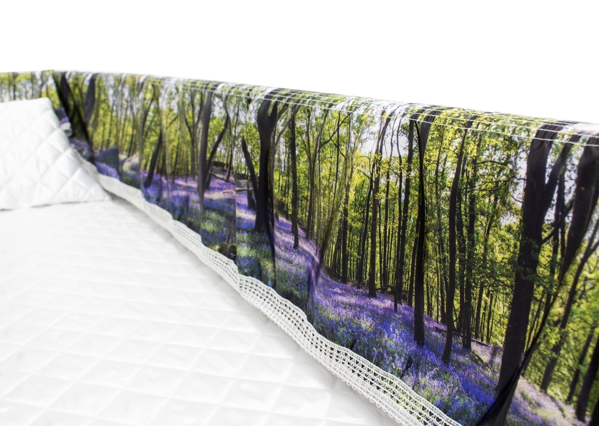 Luxury Satin 18-inch 2-way frill consisting of a 12-inch internal frill with an additional 6-inch exterior frill. The chosen design will be printed on the 18" 2-Way Frill. Please note the image shows a mattress and a pillow which are NOT included. Image is to illustrate style of Interior Only.