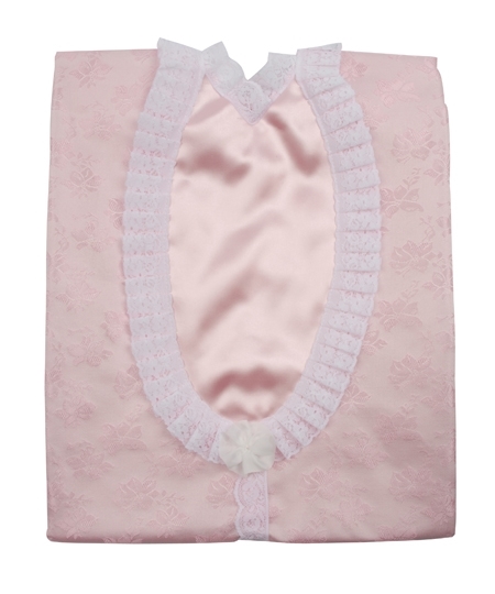 Satin Superior Gown with Brocade Pattern. Available in Cream, Pink and White with an option of a 9" or 12" Frill.
