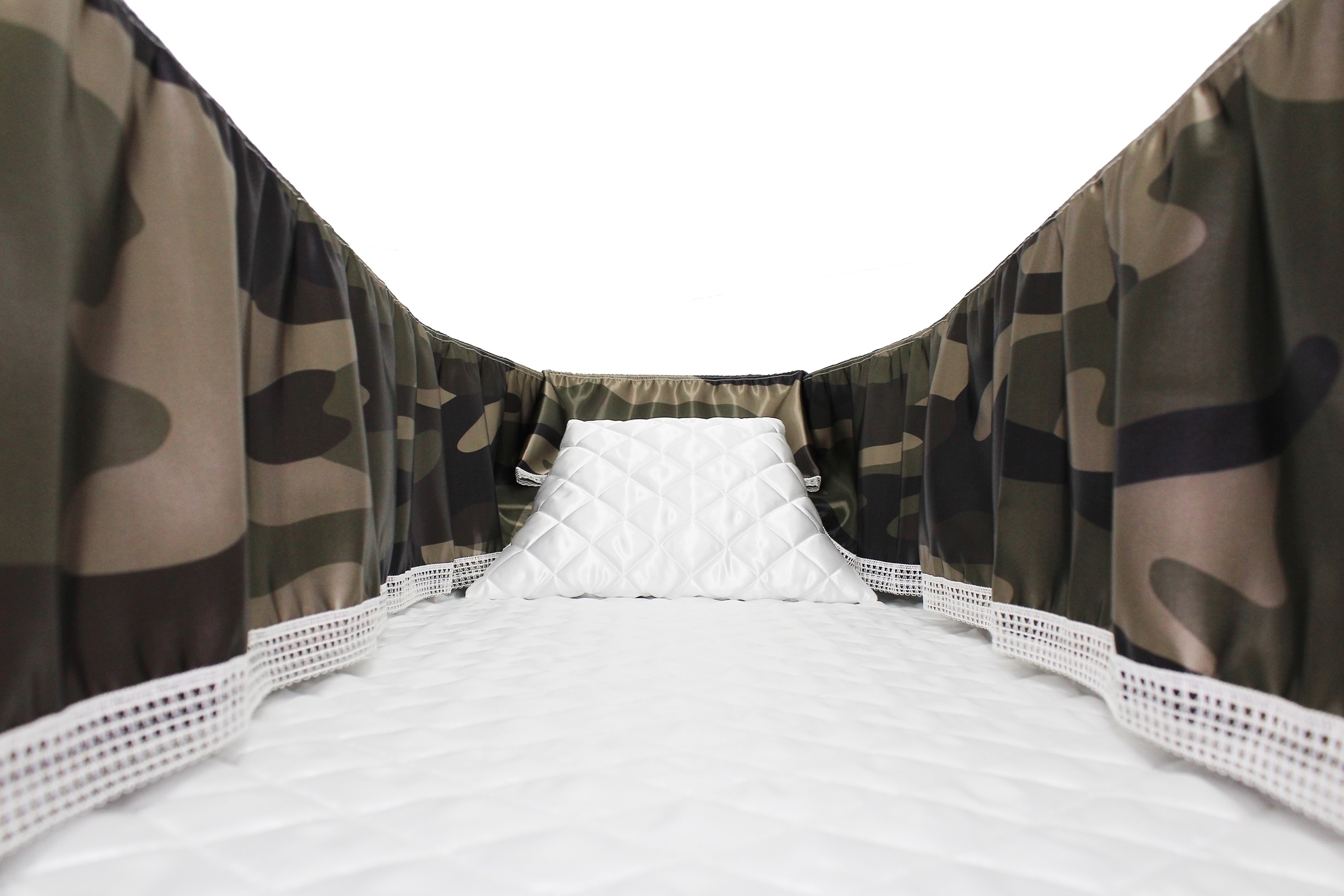 12-inch Printed Satin frill to be attached to the lip of the coffin/casket. Please note the image shows a mattress and pillow which are NOT included.