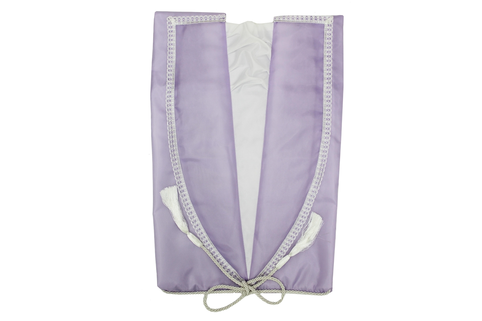 Taffeta Cravat Canterbury Gown. Available in: Blue, Bottle Green, Cream, Lilac, Maroon, Navy Blue, Oyster, Peach, Pink and White with an option of a 9" or 12" Frill.
