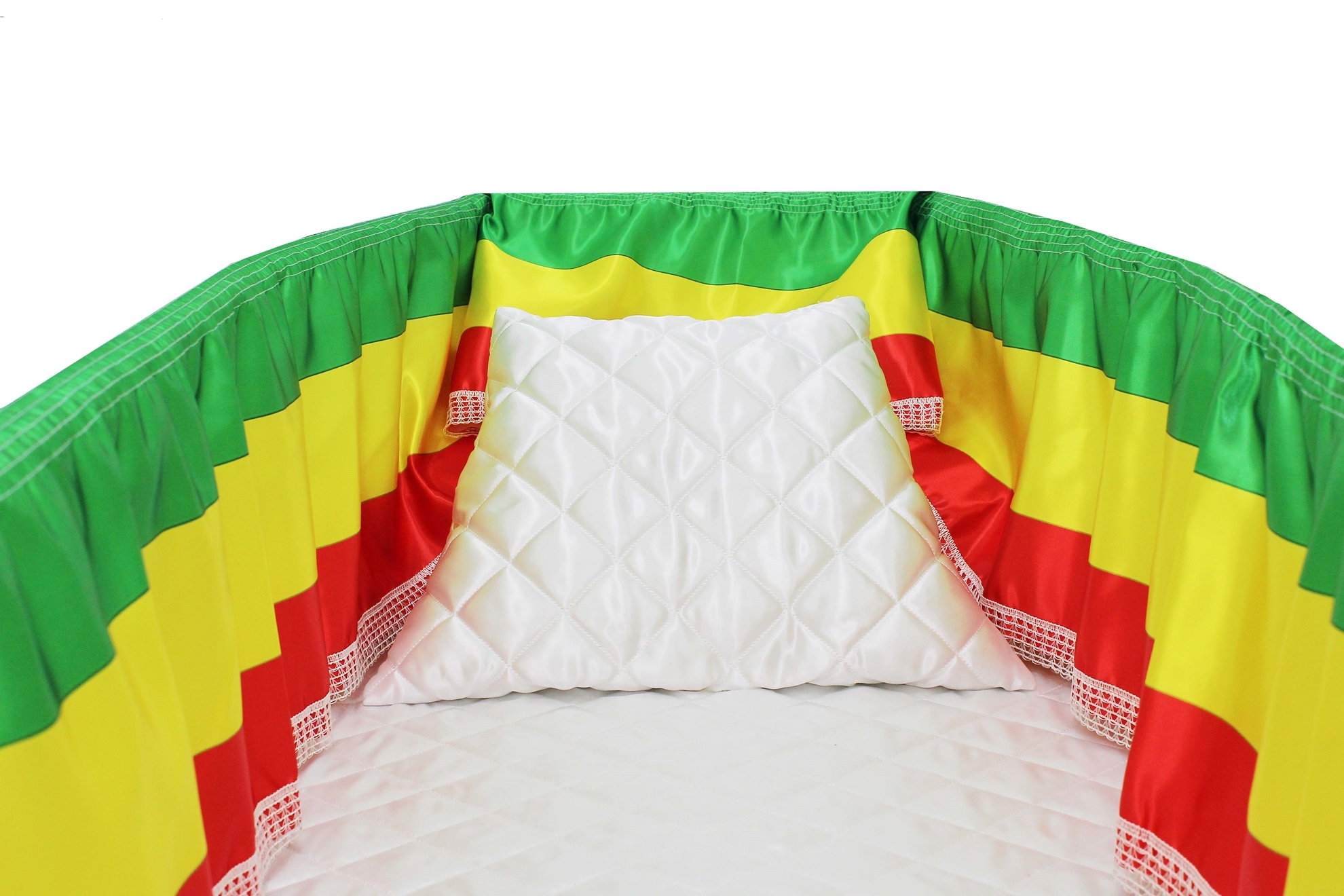 12-inch Printed Satin frill to be attached to the lip of the coffin/casket. Please note the image shows a mattress and pillow which are NOT included.
