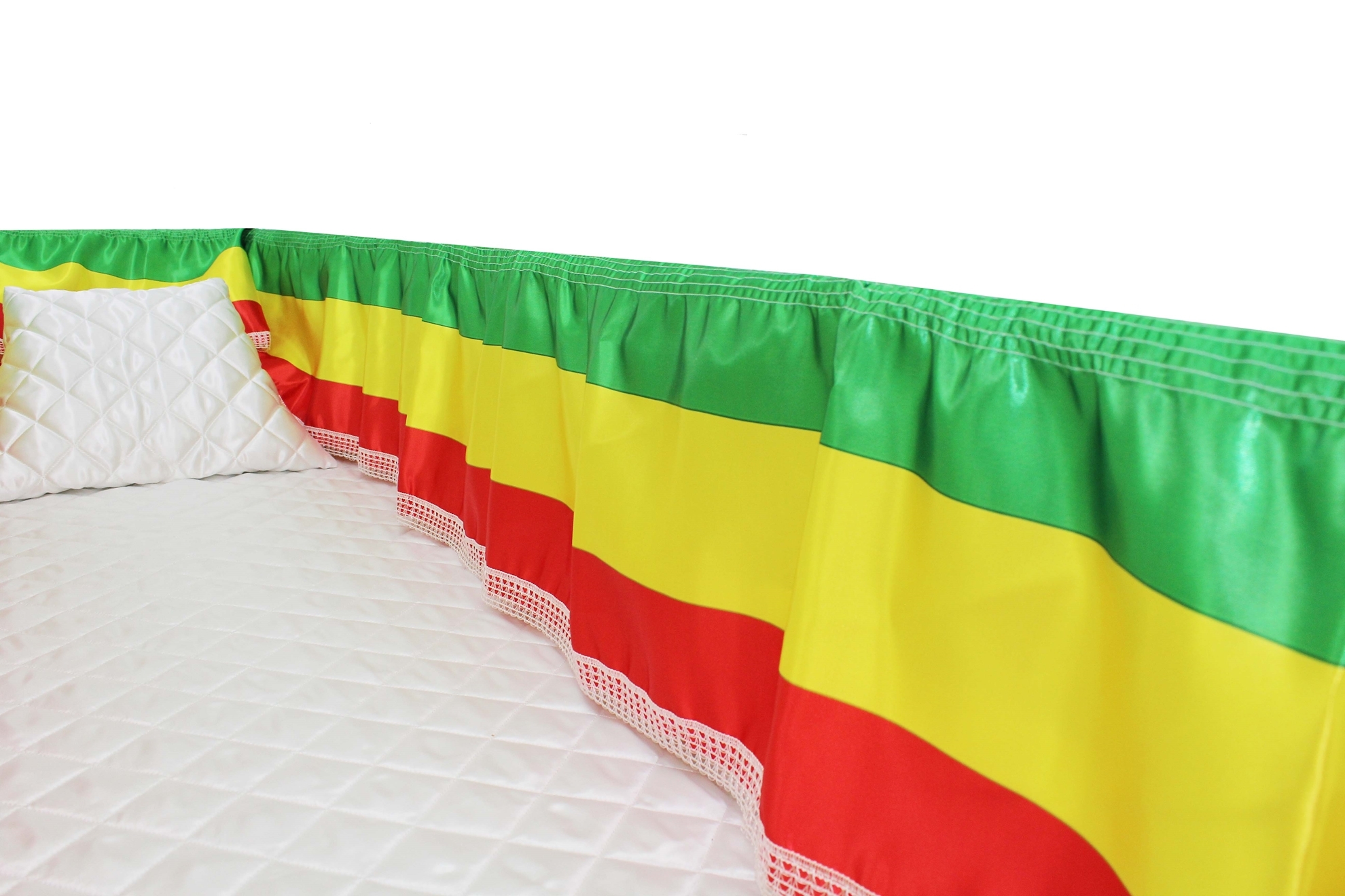 Luxury Satin 18-inch 2-way frill consisting of a 12-inch internal frill with an additional 6-inch exterior frill. The chosen design will be printed on the 18" 2-Way Frill. Please note the image shows a mattress and a pillow which are NOT included. Image is to illustrate style of Interior Only.