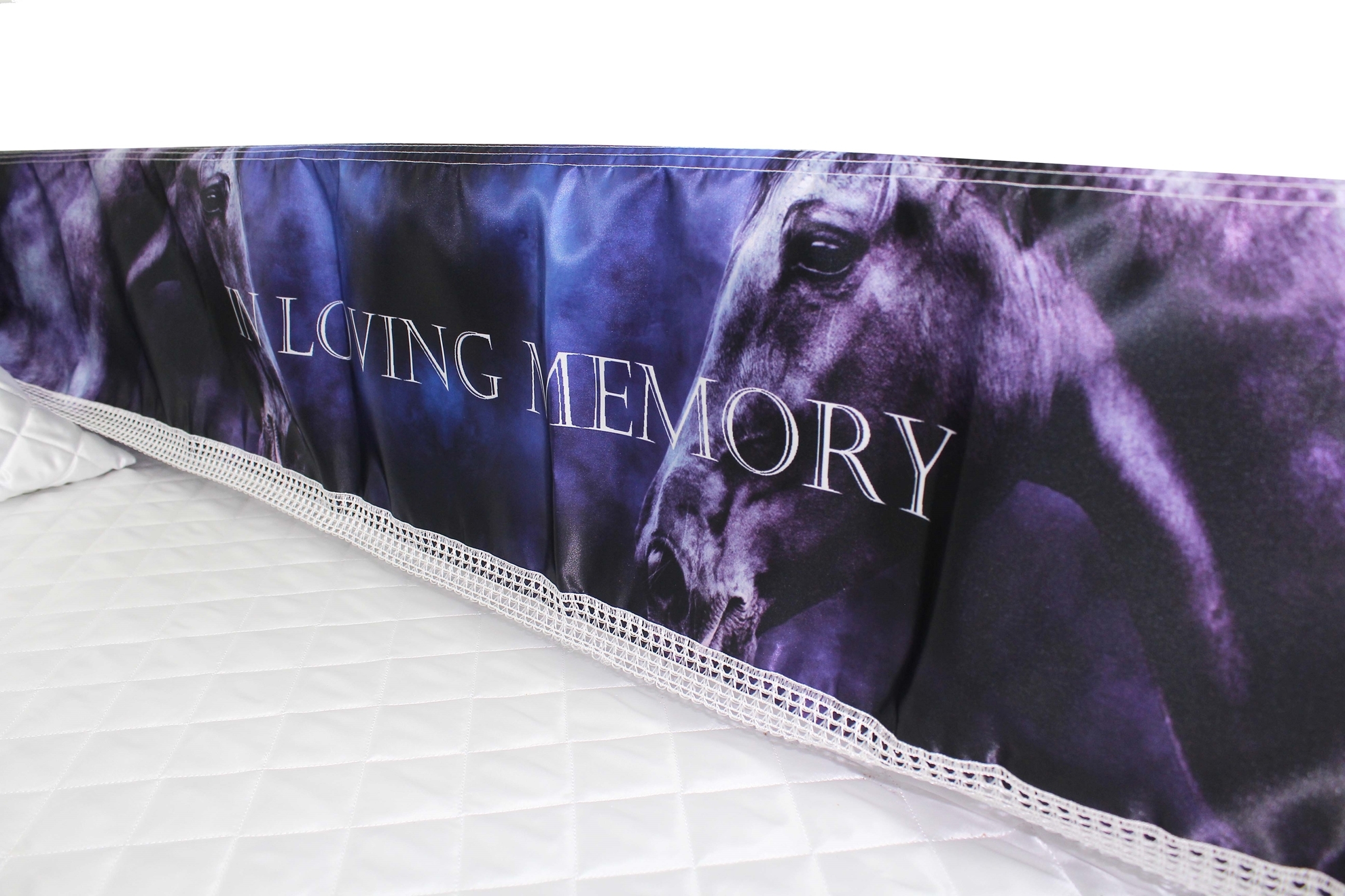 12-inch Printed Satin frill to be attached to the lip of the coffin/casket. Please note the image shows a mattress and pillow which are NOT included.