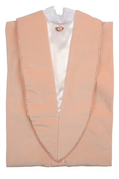 Manufactured in 100% Cotton Velvet with Decorative detail attached to the Neckline. Available in Cream, Lilac, Peach and Pink with an option of a 9" or 12" Frill.