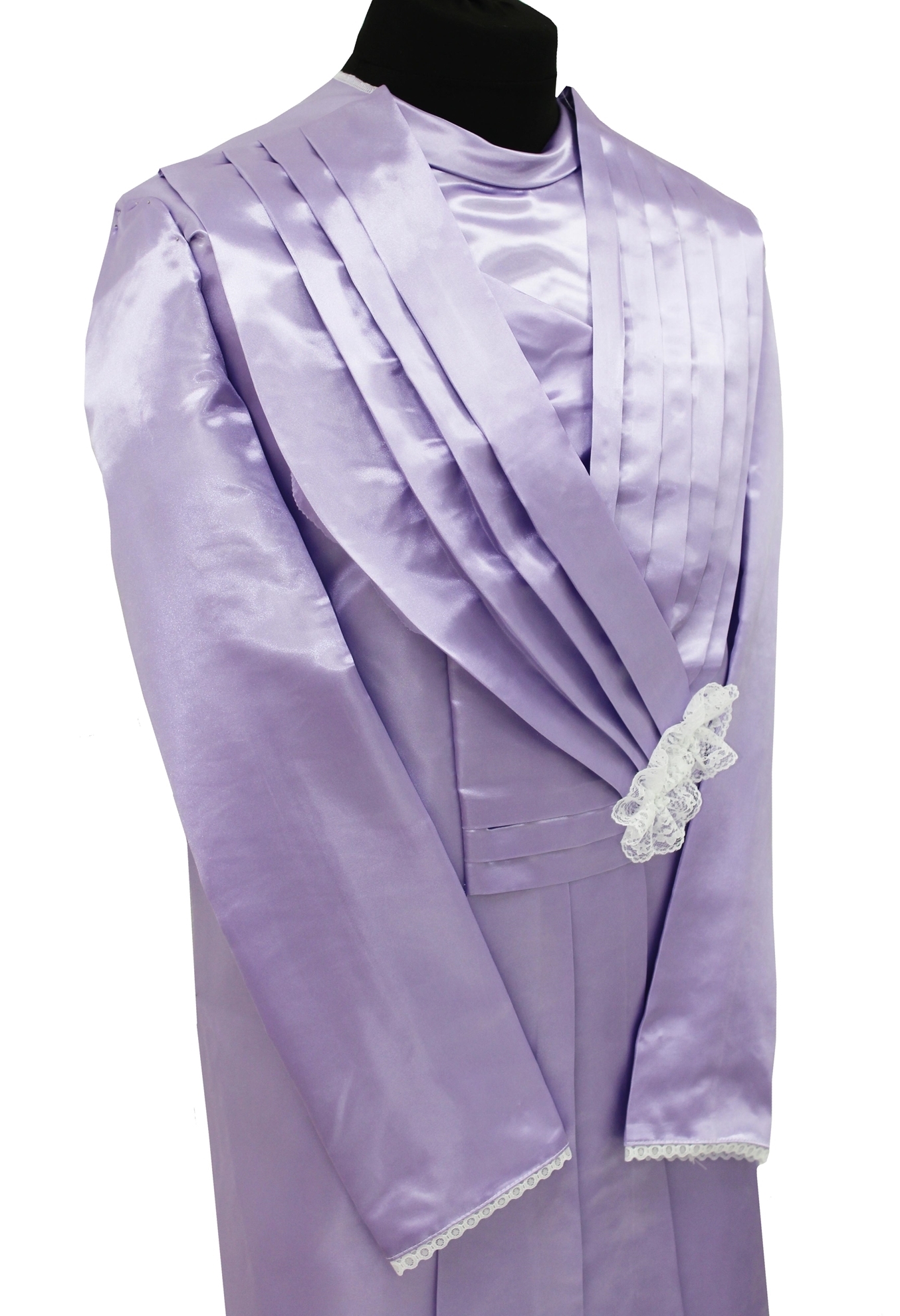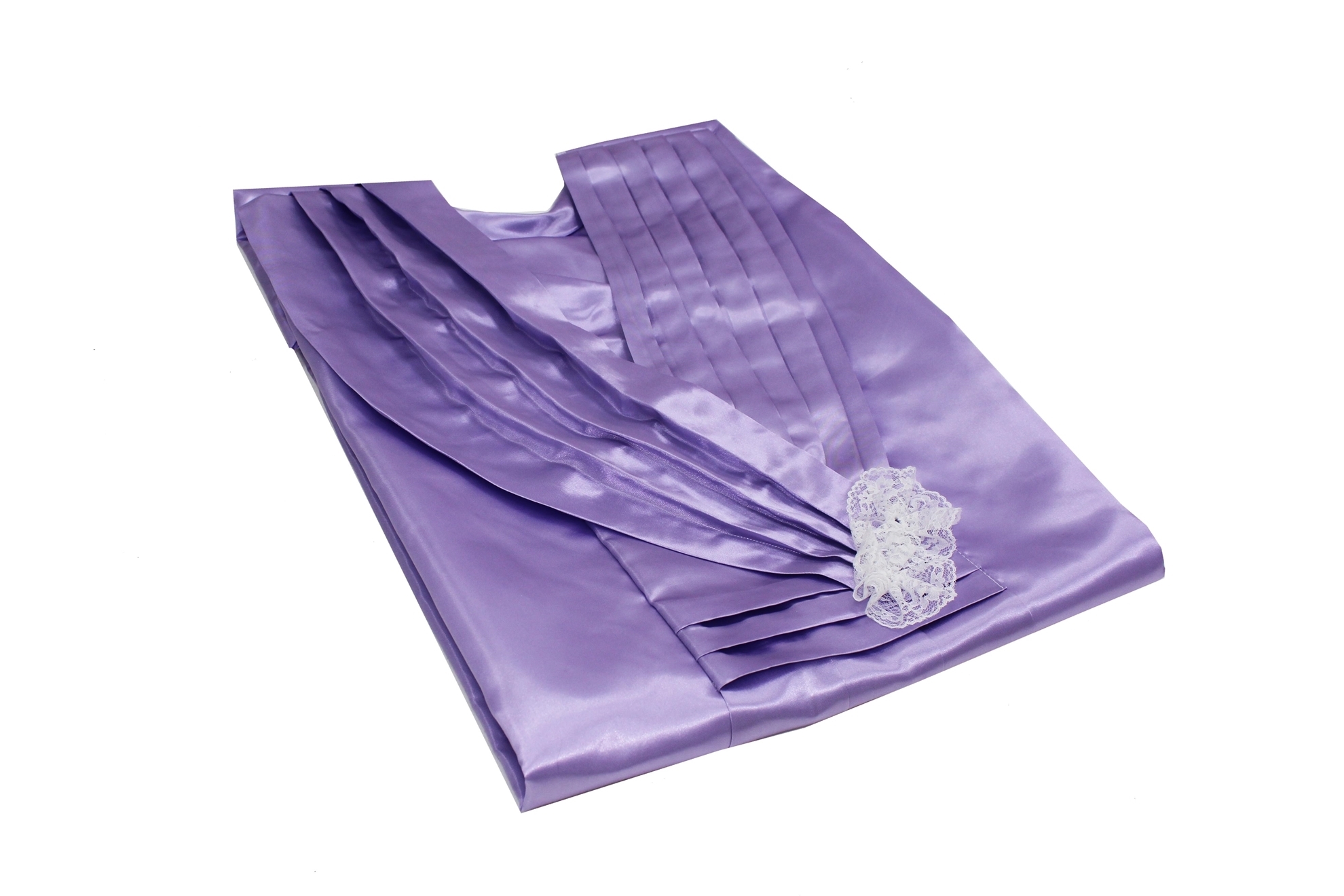 Satin Superior Gown with a Layered Cross over Lapel.  Available in: Blue, Cream, Lilac, Mint Green, Peach, Pink, Silver/Grey and White and with an option of a 9" or 12" Frill.