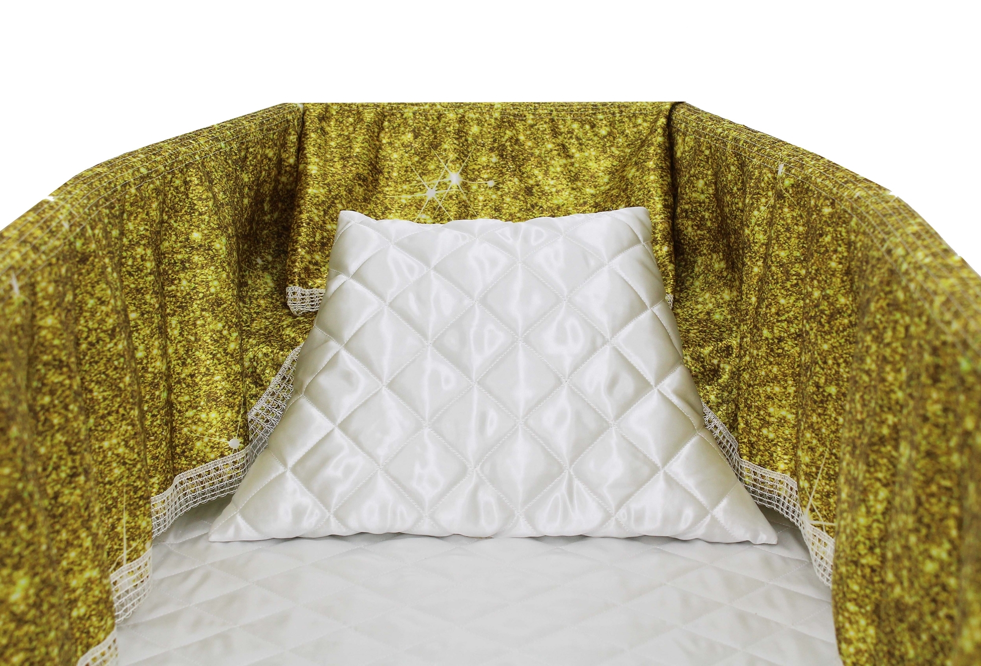 12-inch Printed Satin frill to be attached to the lip of the coffin/casket. Please note the image shows a mattress and pillow which are NOT included.