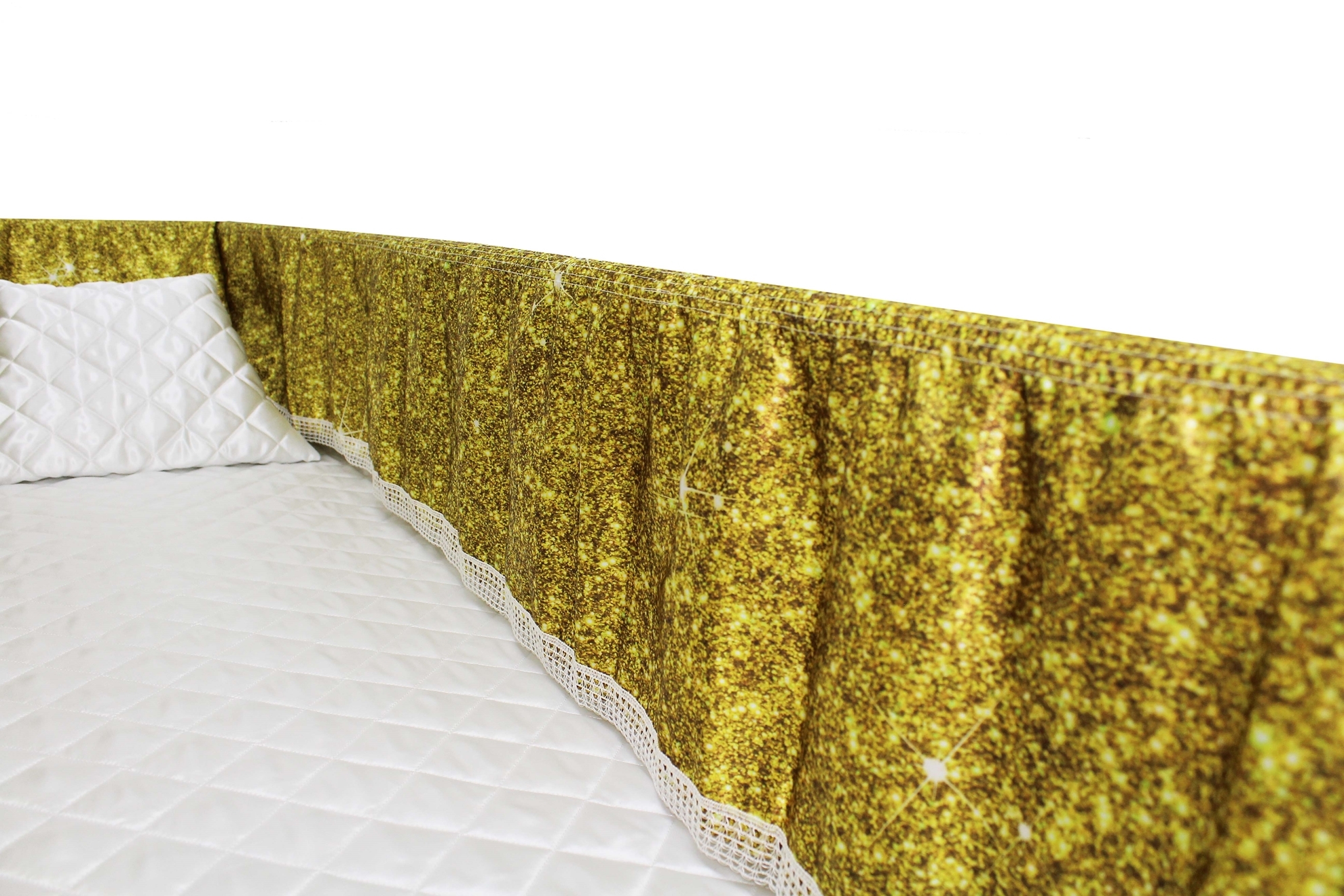 Luxury Satin 18-inch 2-way frill consisting of a 12-inch internal frill with an additional 6-inch exterior frill. The chosen design will be printed on the 18" 2-Way Frill. Please note the image shows a mattress and a pillow which are NOT included. Image is to illustrate style of Interior Only.