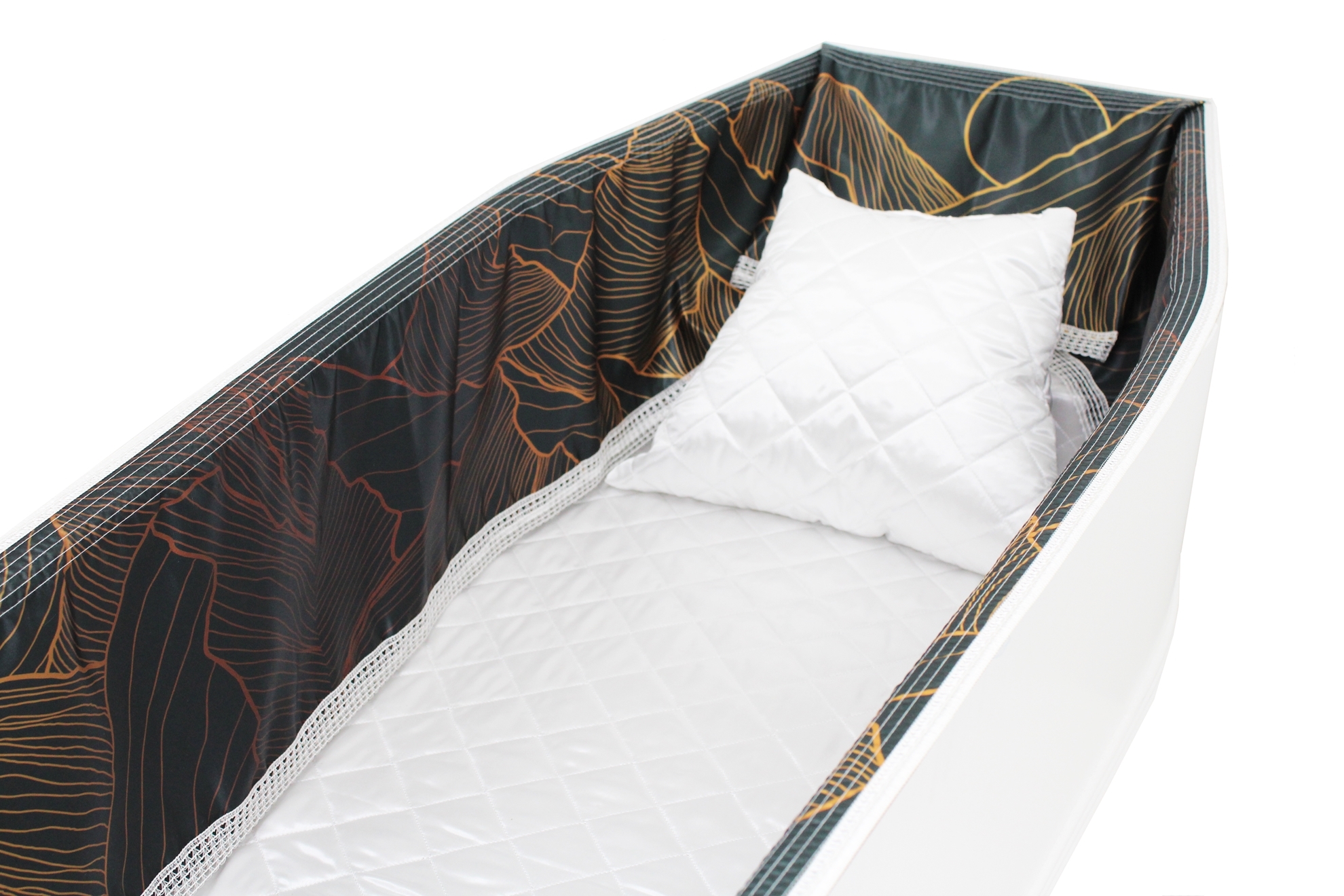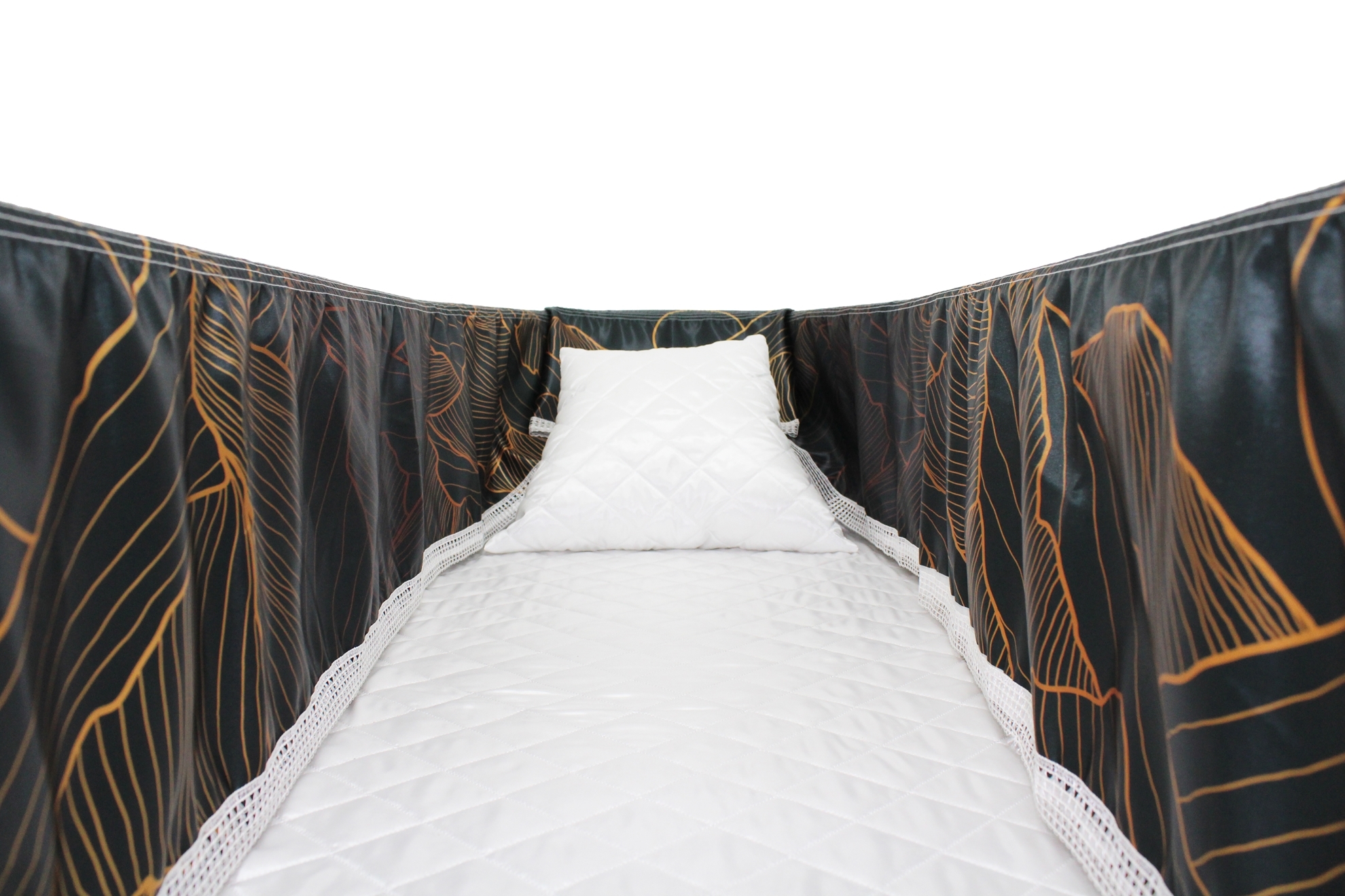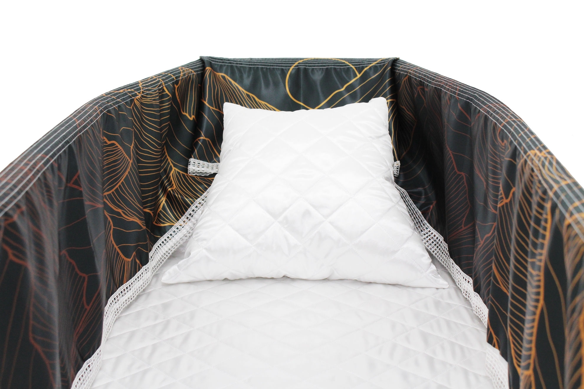 12-inch Printed Satin frill to be attached to the lip of the coffin/casket. Please note the image shows a mattress and pillow which are NOT included.