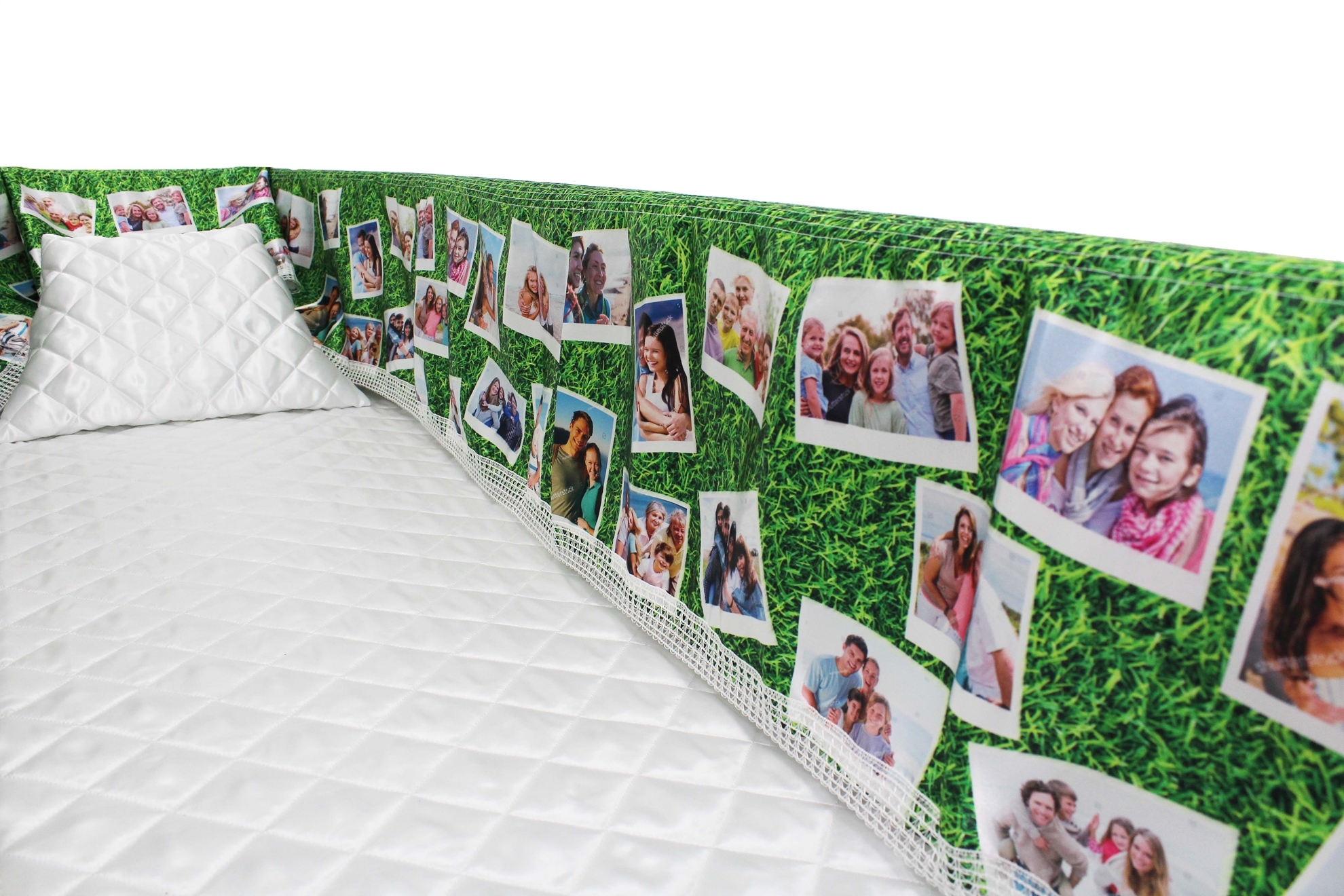 Luxury Satin 18-inch 2-way frill consisting of a 12-inch internal frill with an additional 6-inch exterior frill. The chosen design will be printed on the 18" 2-Way Frill. Please note the image shows a mattress and a pillow which are NOT included. Image is to illustrate style of Interior Only.
