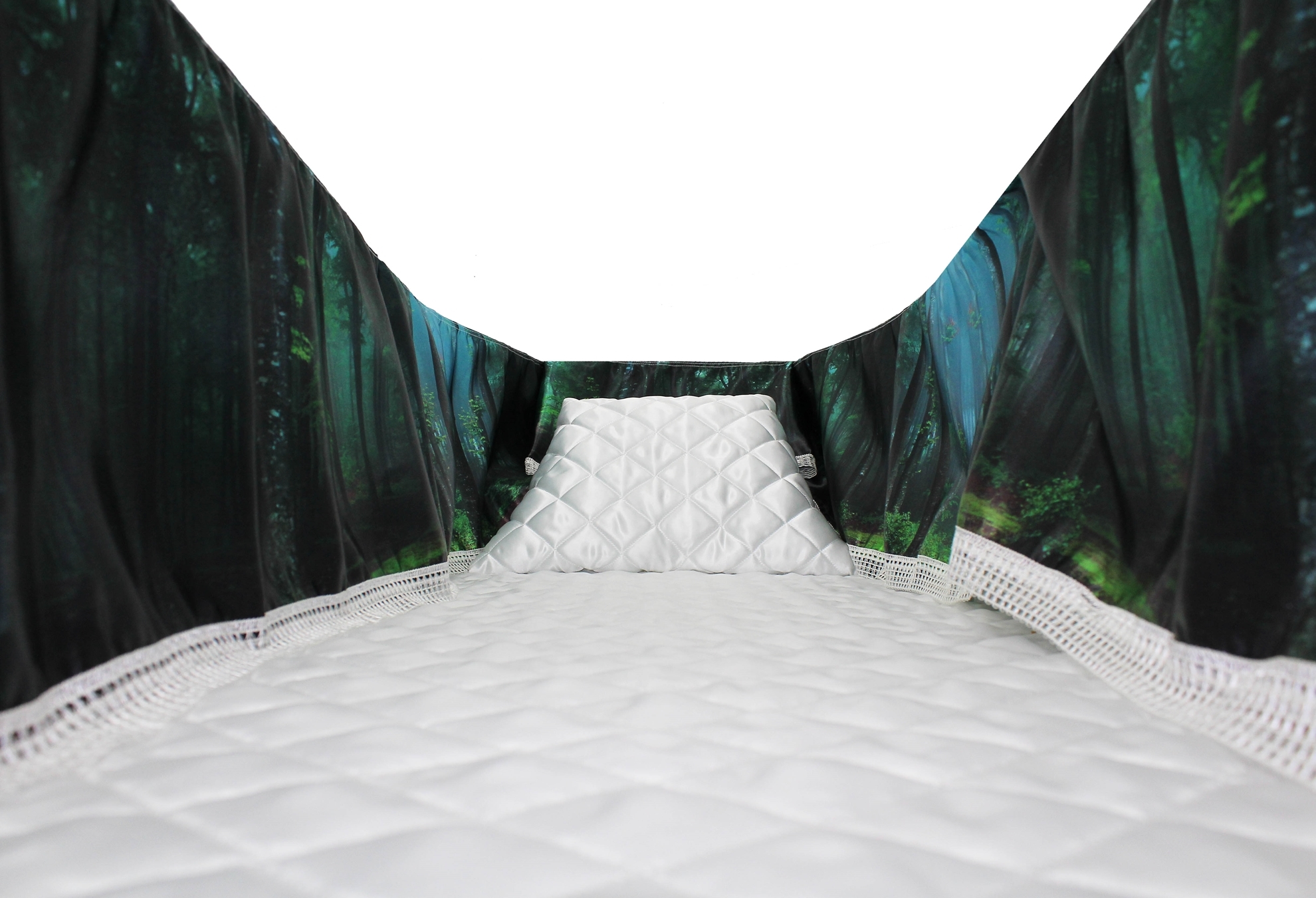 12-inch Printed Satin frill to be attached to the lip of the coffin/casket. Please note the image shows a mattress and pillow which are NOT included.