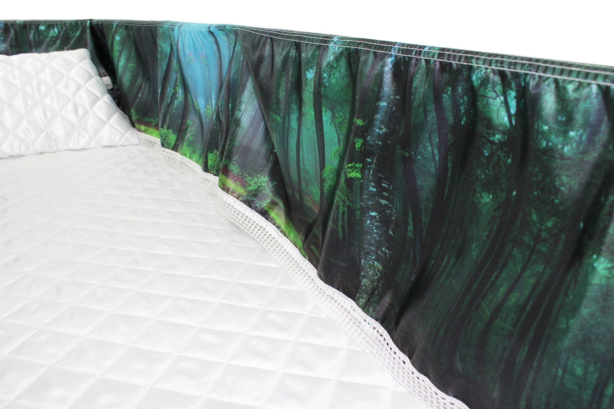 Luxury Satin 18-inch 2-way frill consisting of a 12-inch internal frill with an additional 6-inch exterior frill. The chosen design will be printed on the 18" 2-Way Frill. Please note the image shows a mattress and a pillow which are NOT included. Image is to illustrate style of Interior Only.