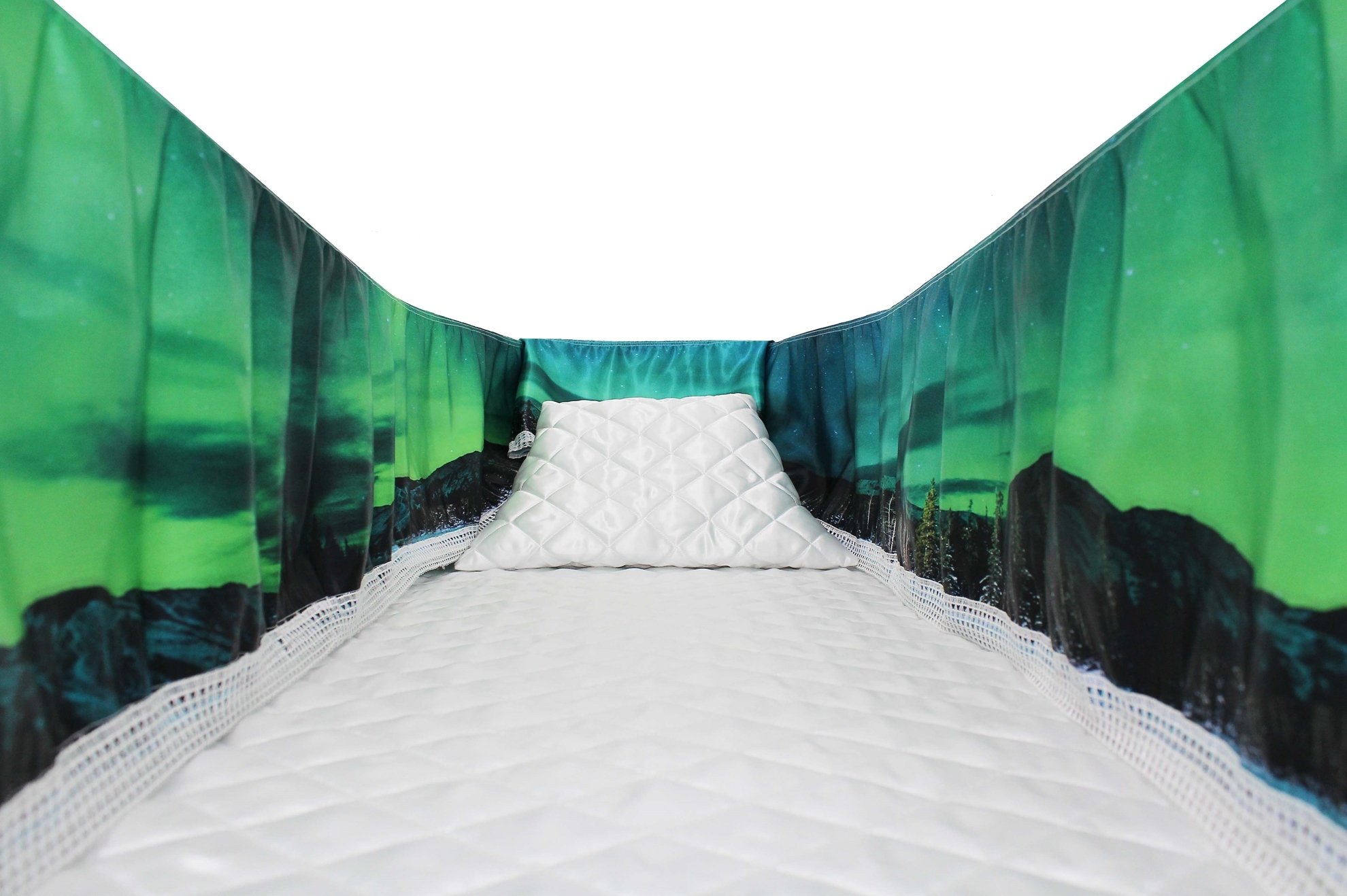 12-inch Printed Satin frill to be attached to the lip of the coffin/casket. Please note the image shows a mattress and pillow which are NOT included.