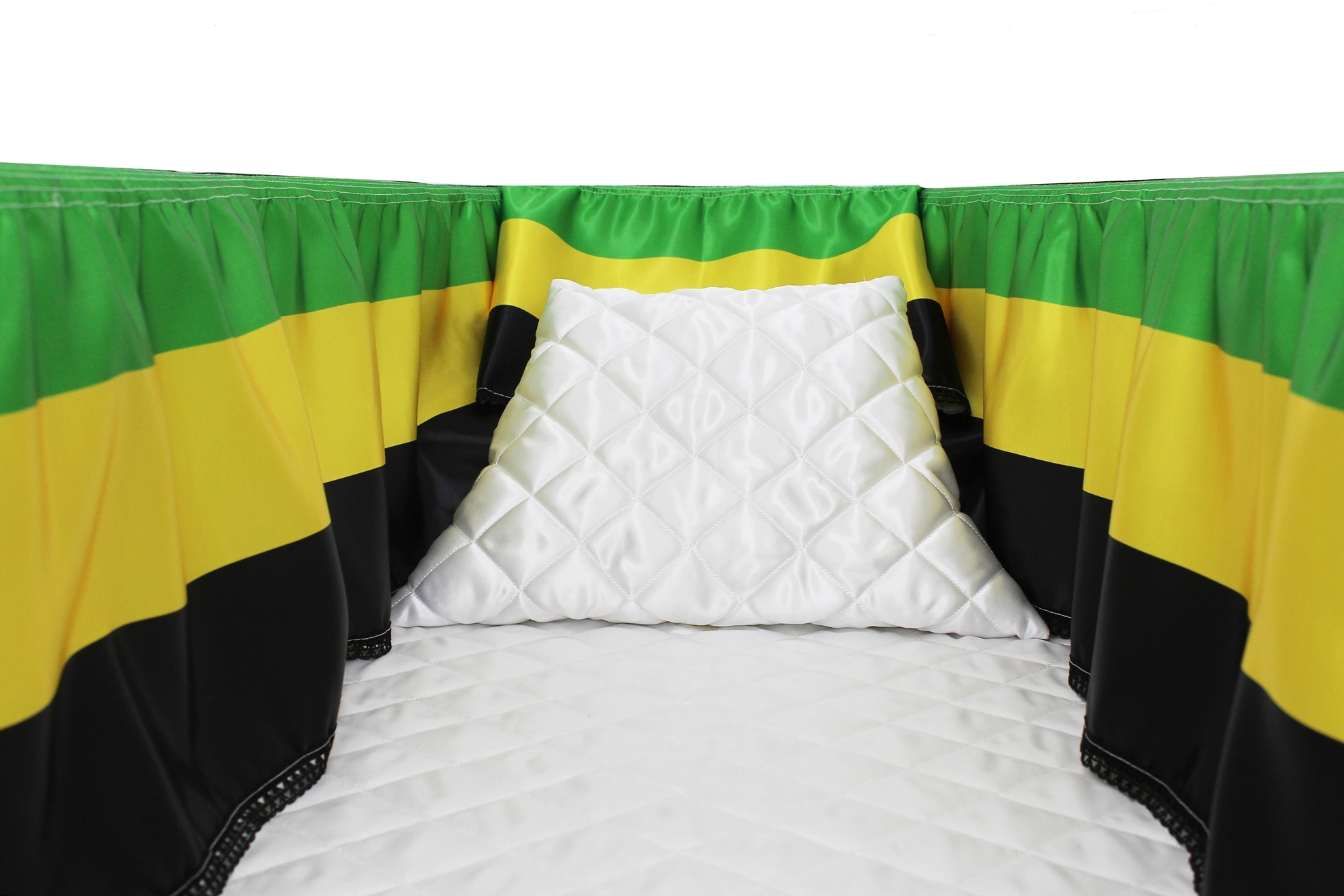 12-inch Printed Satin frill to be attached to the lip of the coffin/casket. Please note the image shows a mattress and pillow which are NOT included.