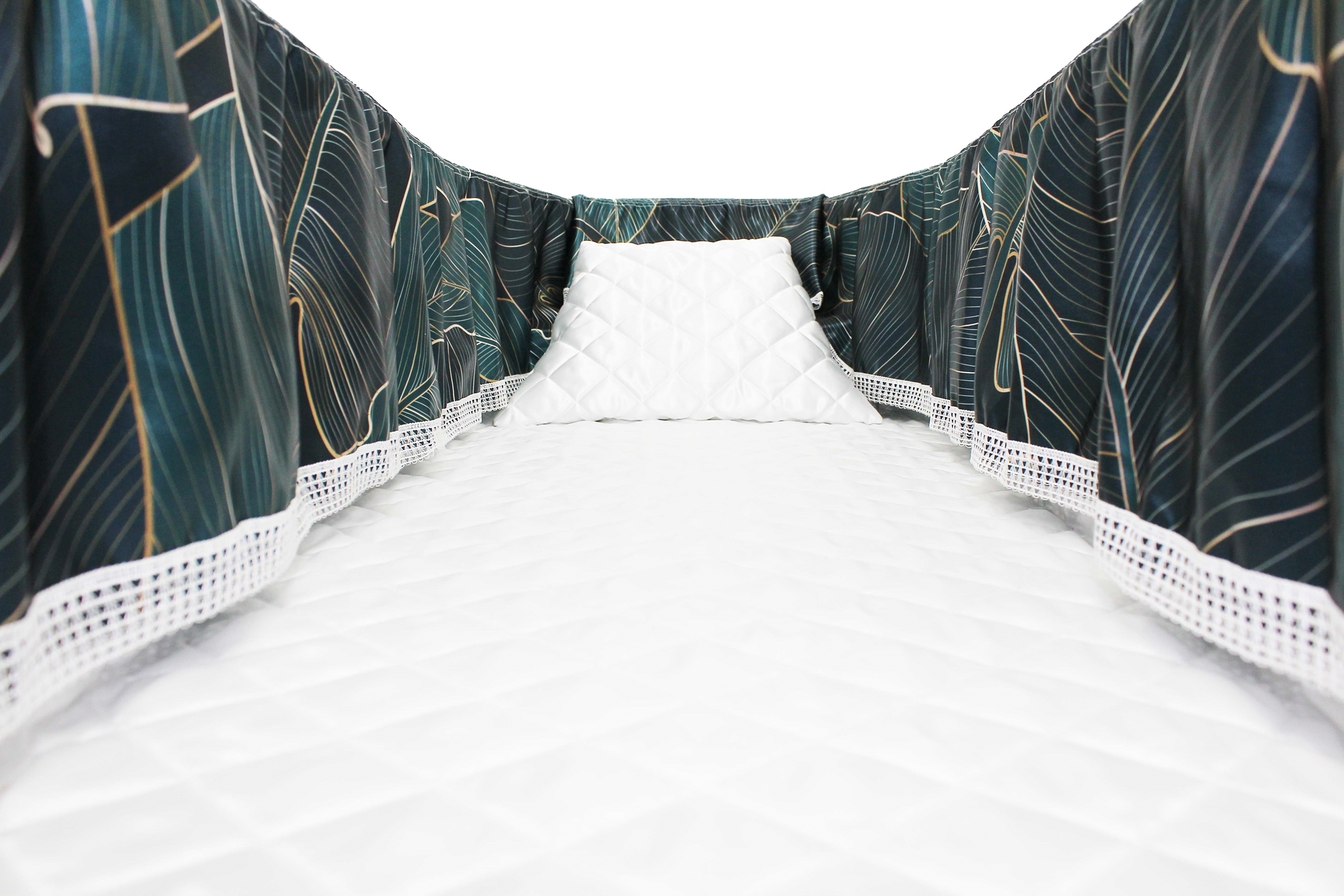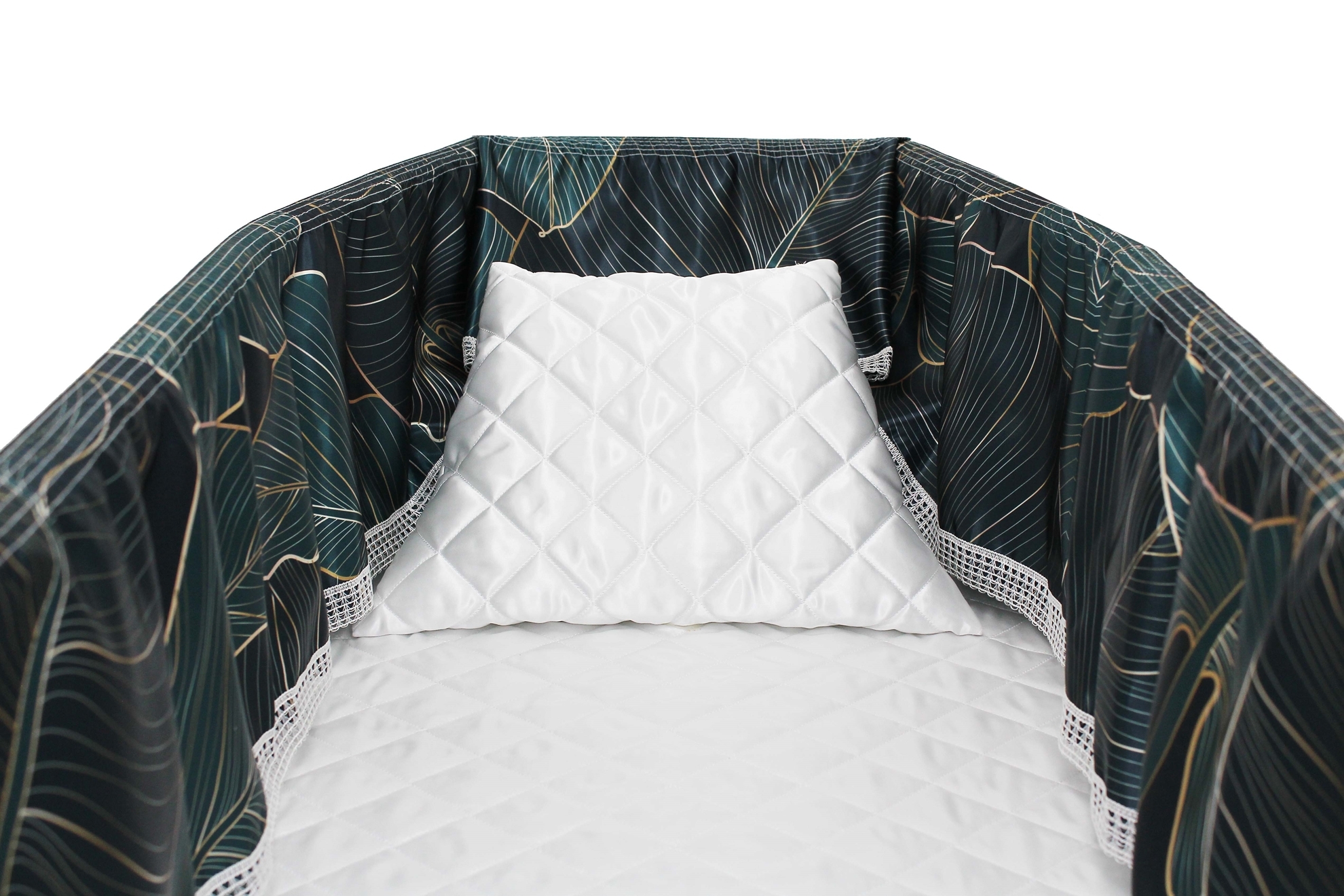12-inch Printed Satin frill to be attached to the lip of the coffin/casket. Please note the image shows a mattress and pillow which are NOT included.