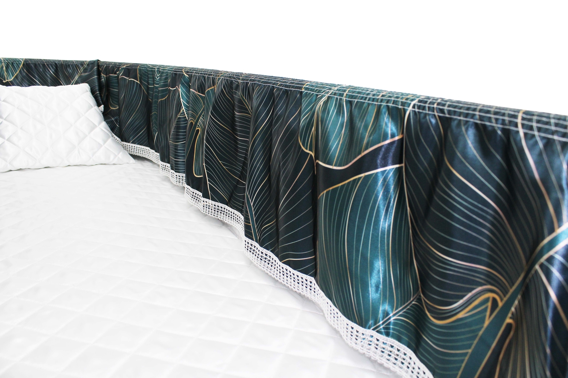 Luxury Satin 18-inch 2-way frill consisting of a 12-inch internal frill with an additional 6-inch exterior frill. The chosen design will be printed on the 18" 2-Way Frill. Please note the image shows a mattress and a pillow which are NOT included. Image is to illustrate style of Interior Only.