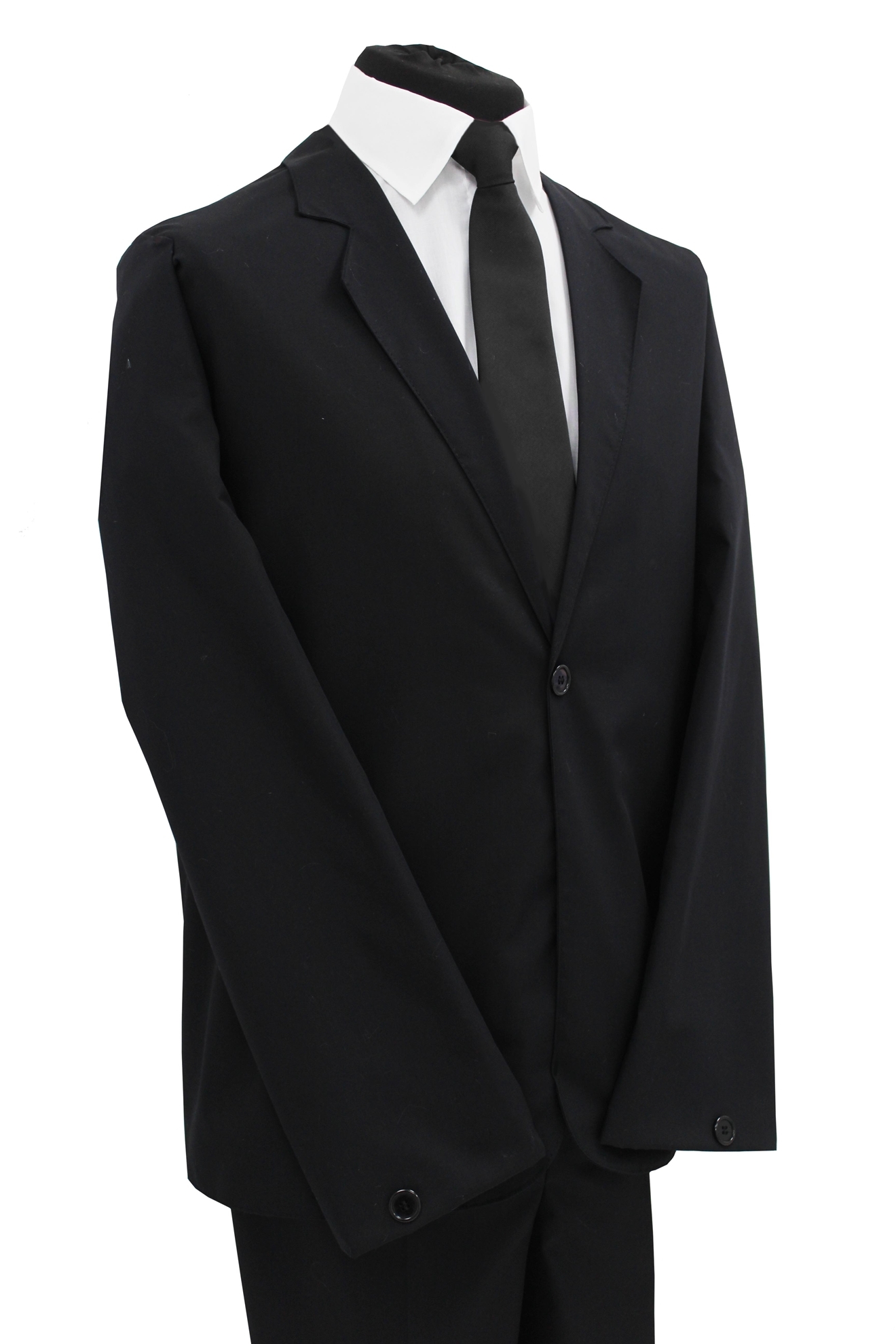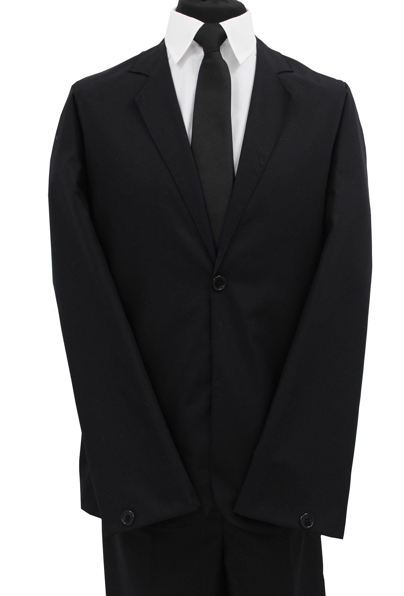 Cotton Drill Suit Style Gown wich comes complete with Jacket, a Separate Piece of Material to Replicate Trousers and a Shirt and Tie. Designed to facilitate the dressing process. Available in: Black, Grey or Navy Blue with an option of a 9" or 12" Frill.