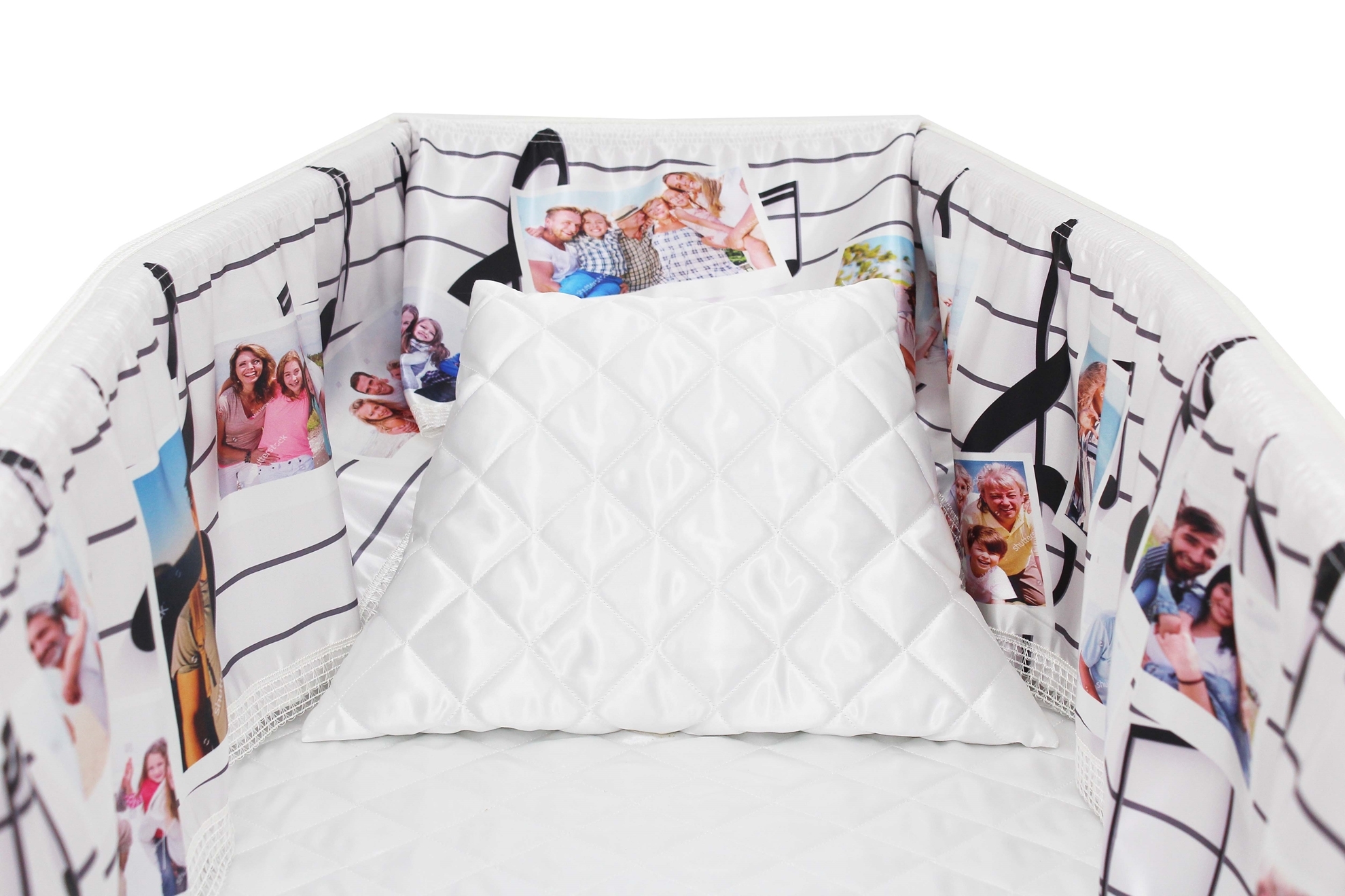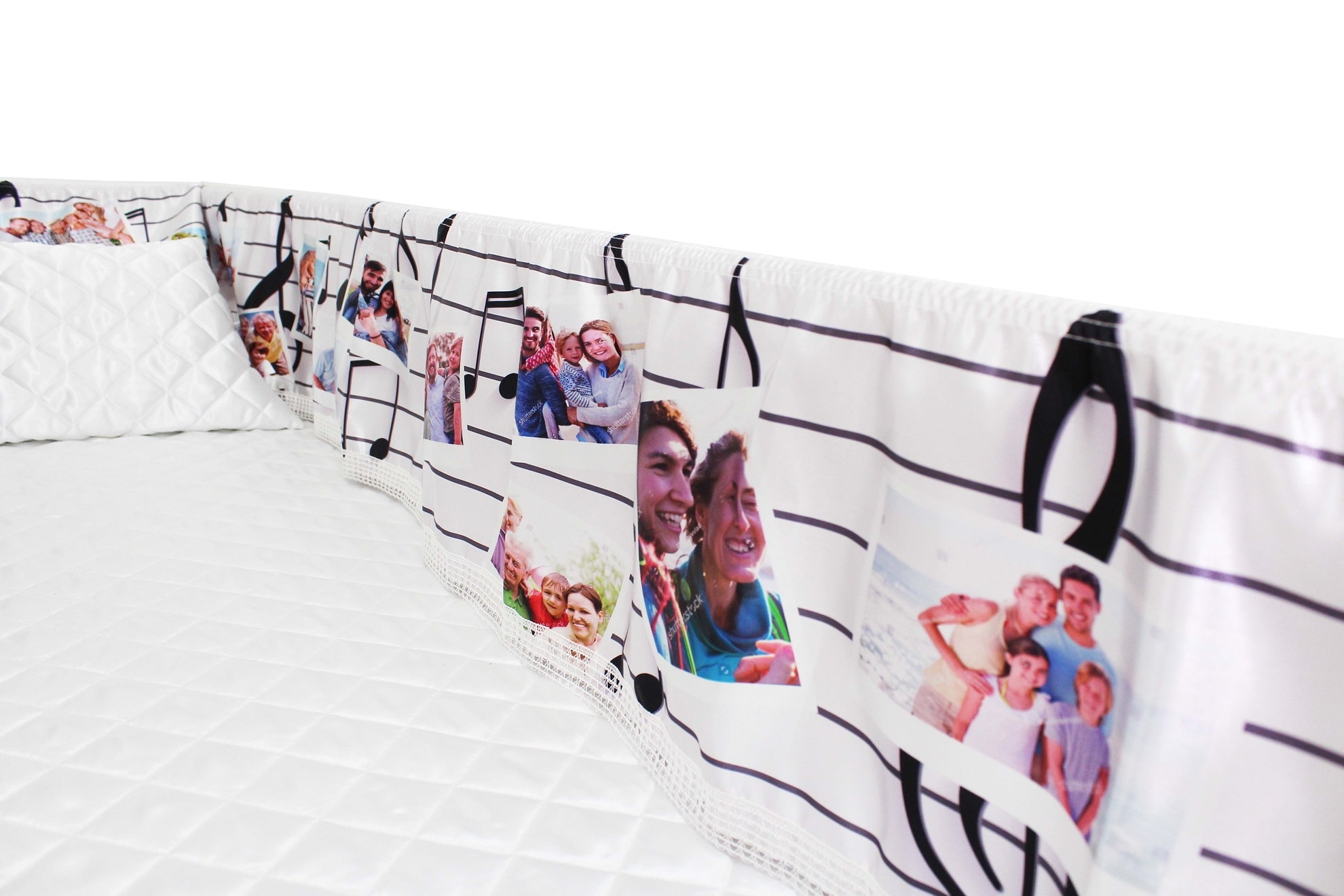 Luxury Satin 18-inch 2-way frill consisting of a 12-inch internal frill with an additional 6-inch exterior frill. The chosen design will be printed on the 18" 2-Way Frill. Please note the image shows a mattress and a pillow which are NOT included. Image is to illustrate style of Interior Only.