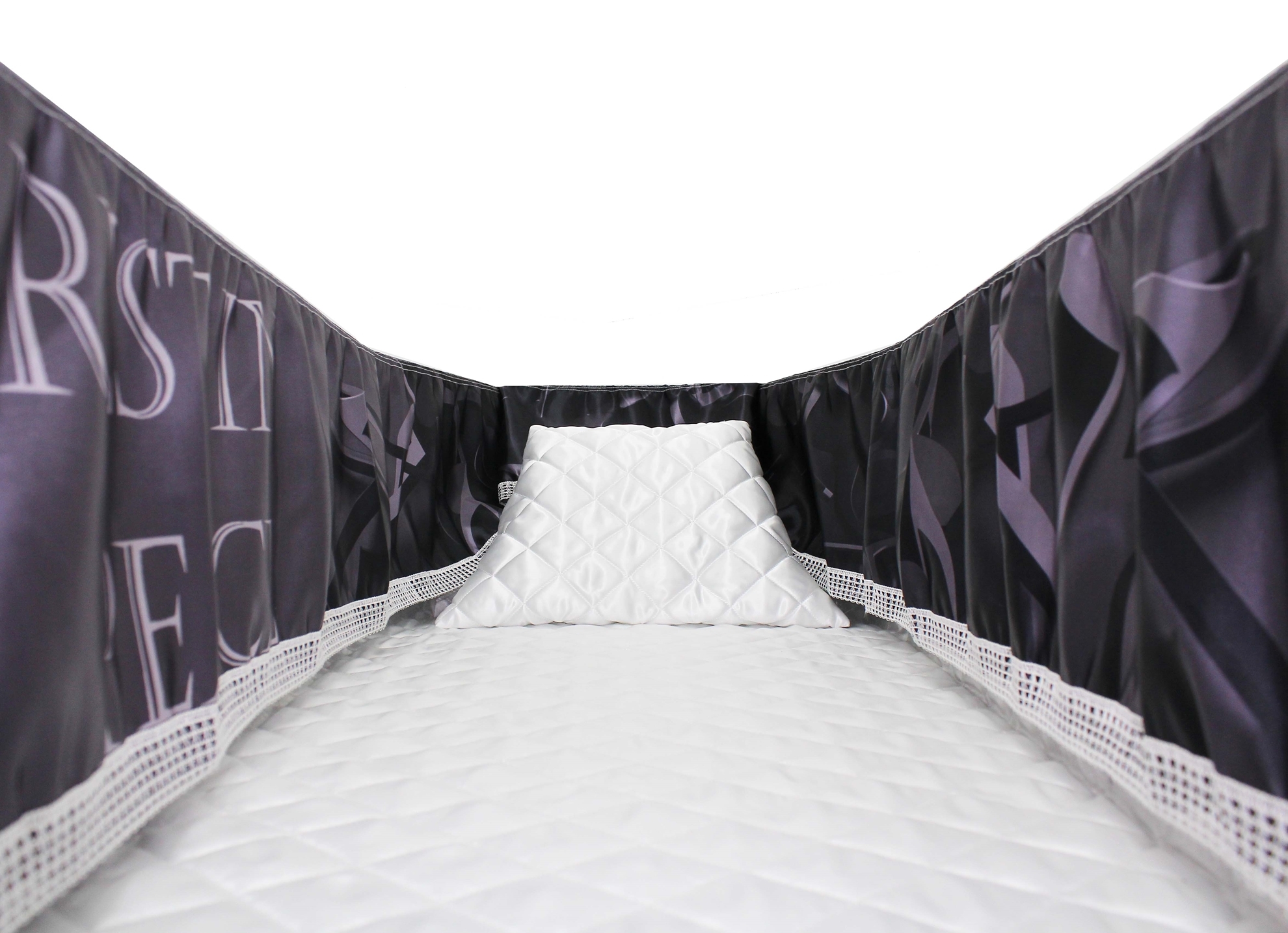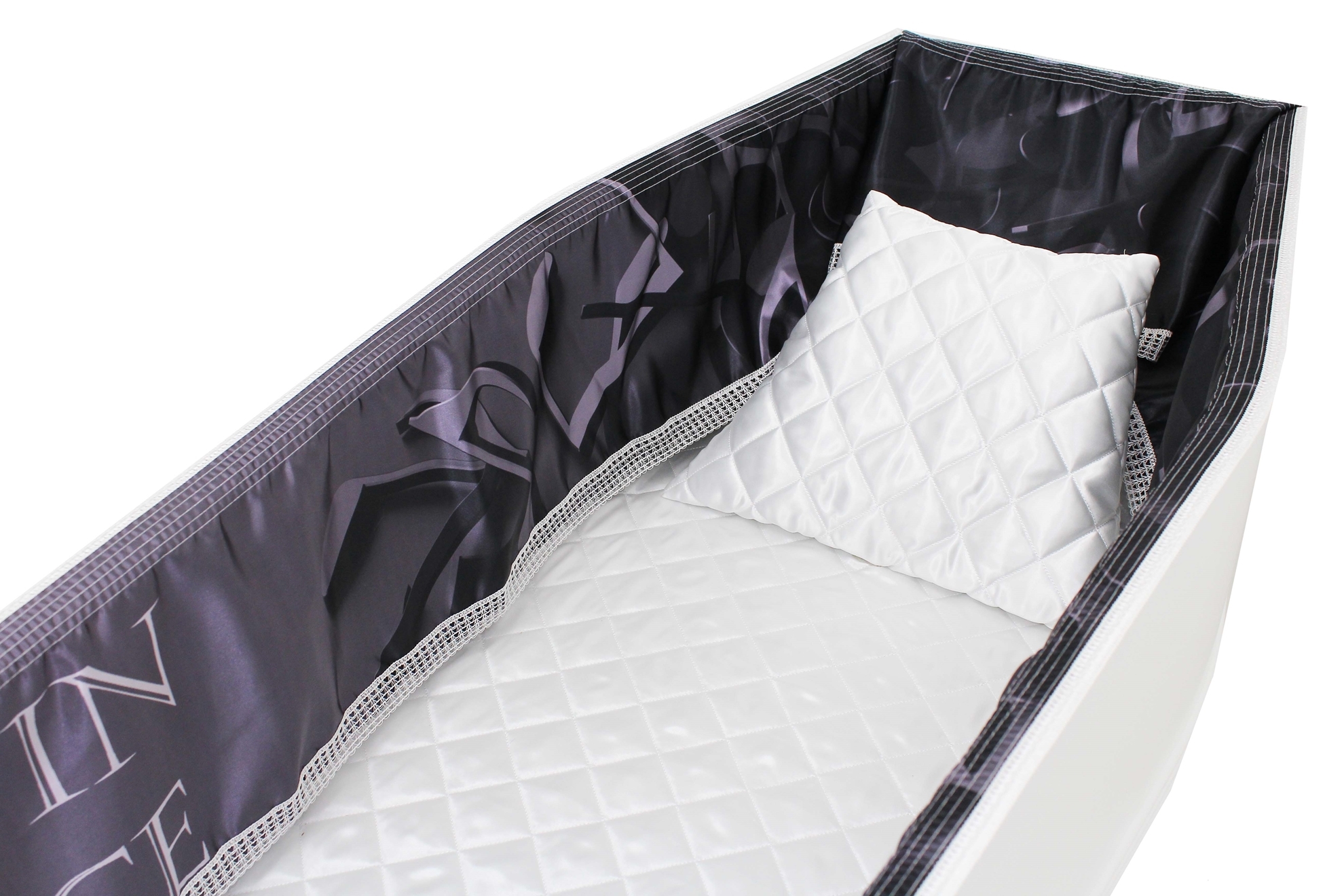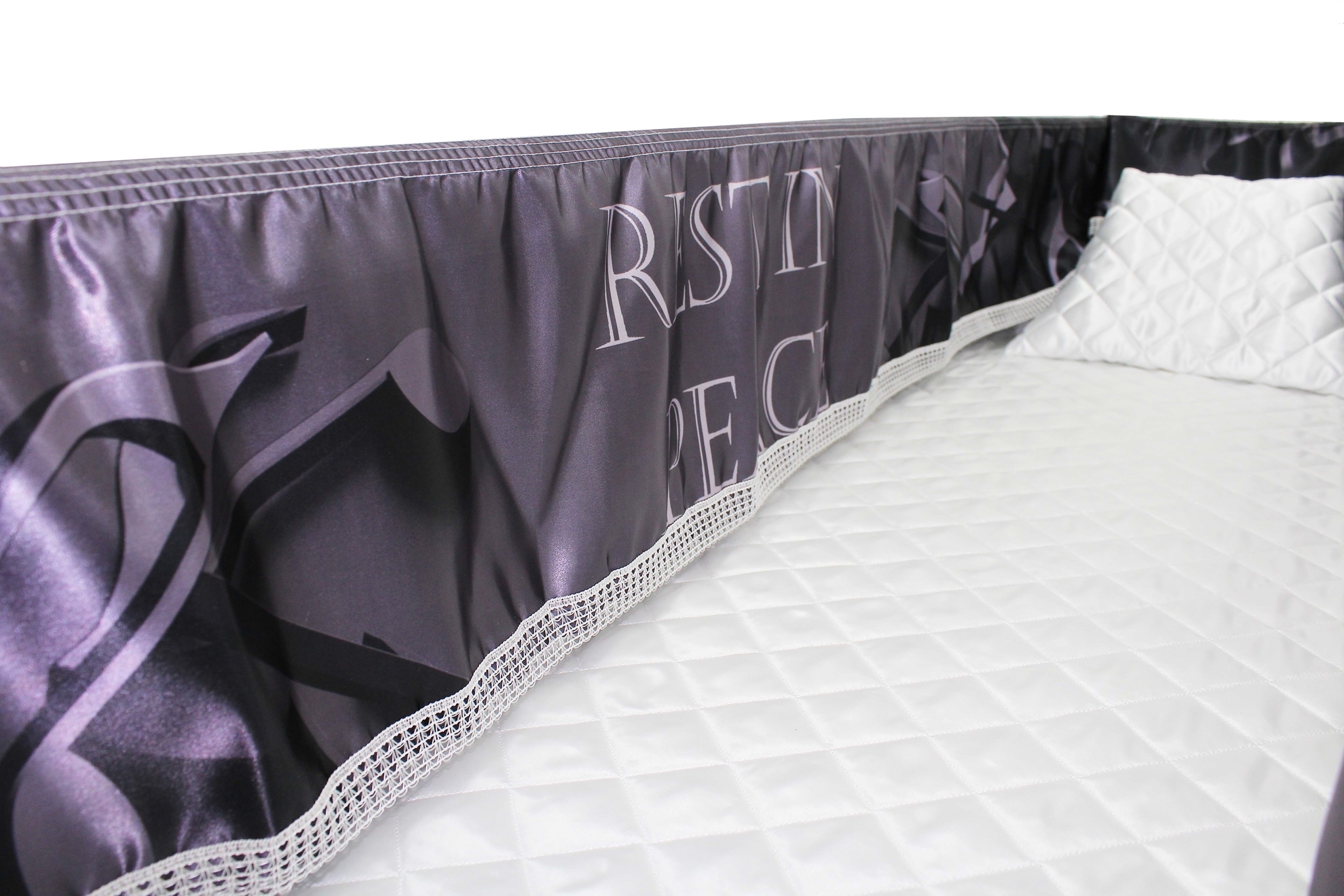 12-inch Printed Satin frill to be attached to the lip of the coffin/casket. Please note the image shows a mattress and pillow which are NOT included.