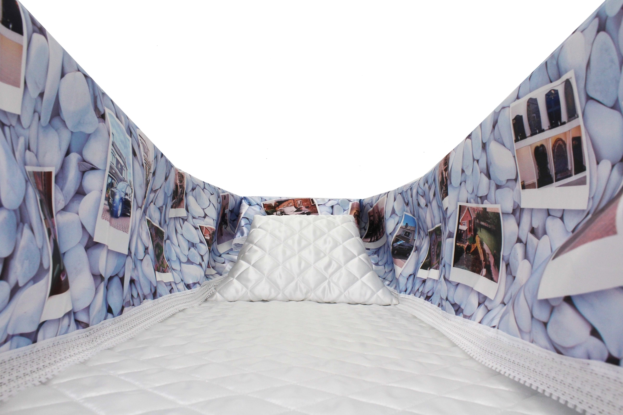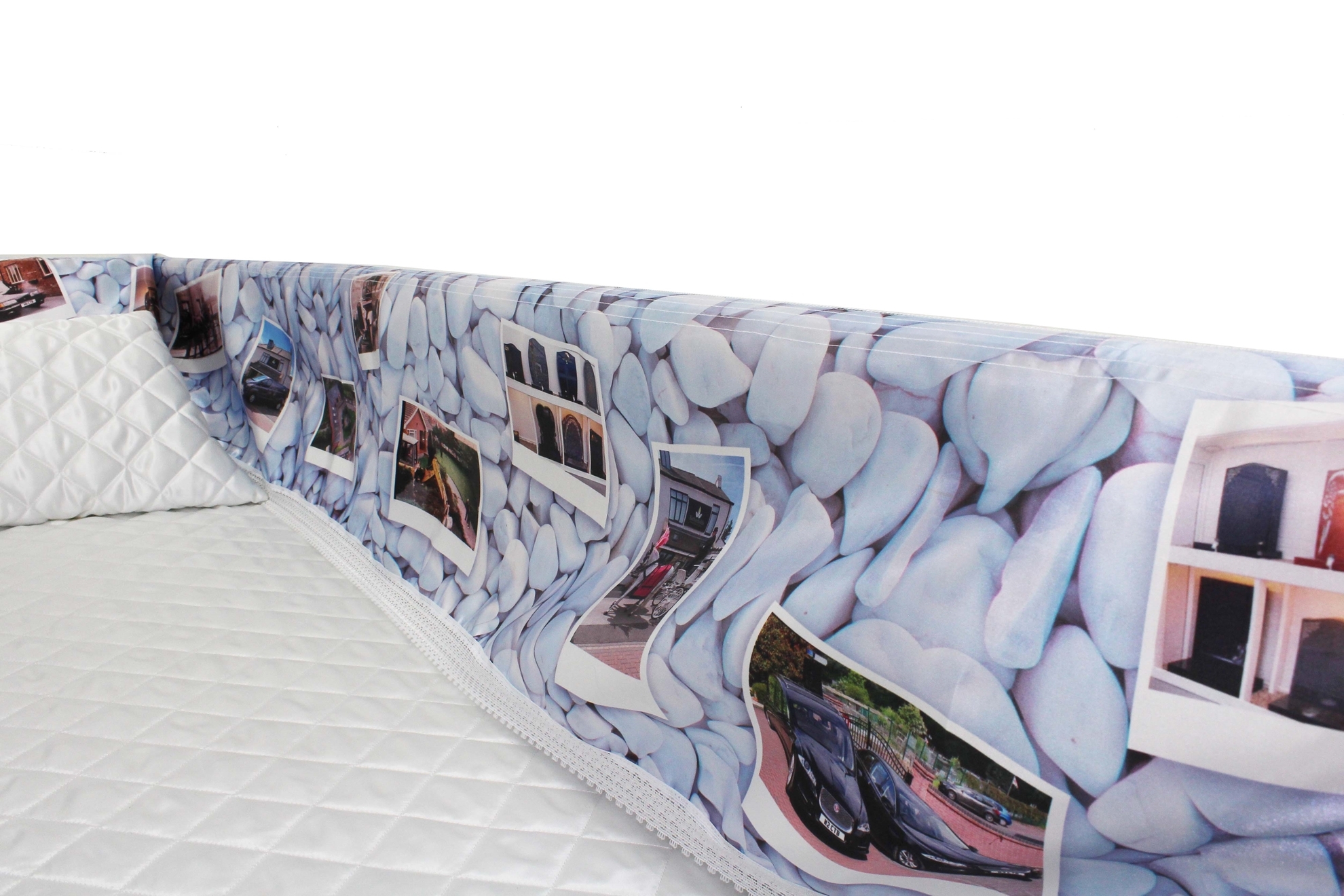 Luxury Satin 18-inch 2-way frill consisting of a 12-inch internal frill with an additional 6-inch exterior frill. The chosen design will be printed on the 18" 2-Way Frill. Please note the image shows a mattress and a pillow which are NOT included. Image is to illustrate style of Interior Only.