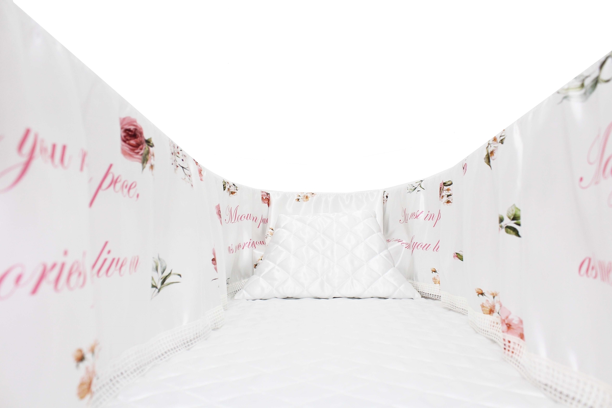 Luxury Satin 18-inch 2-way frill consisting of a 12-inch internal frill with an additional 6-inch exterior frill. The chosen design will be printed on the 18" 2-Way Frill. Please note the image shows a mattress and a pillow which are NOT included. Image is to illustrate style of Interior Only.