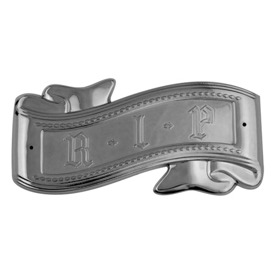 Plastic R.I.P Ornament. Available in Brass or Nickel finish.