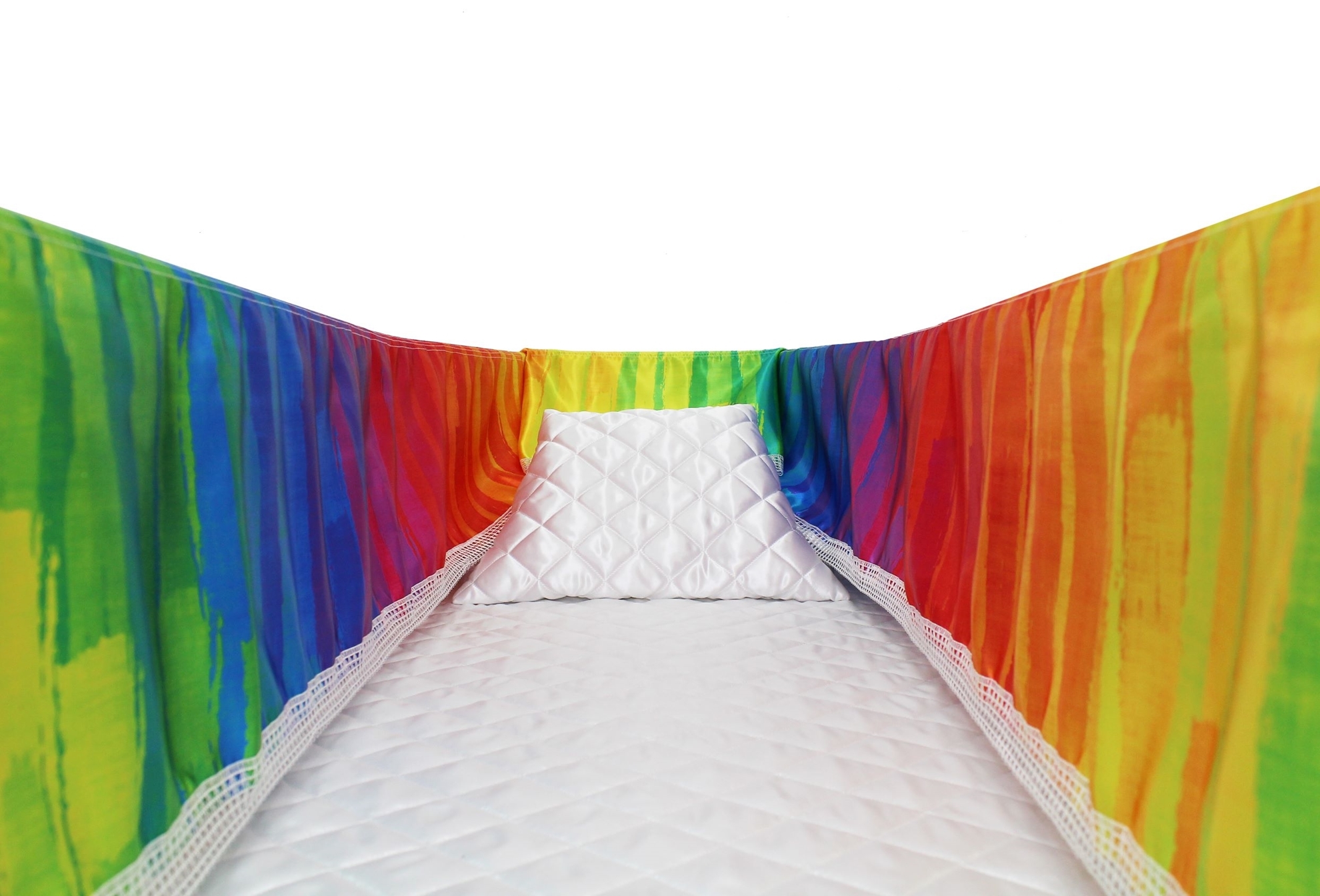 12-inch Printed Satin frill to be attached to the lip of the coffin/casket. Please note the image shows a mattress and pillow which are NOT included.