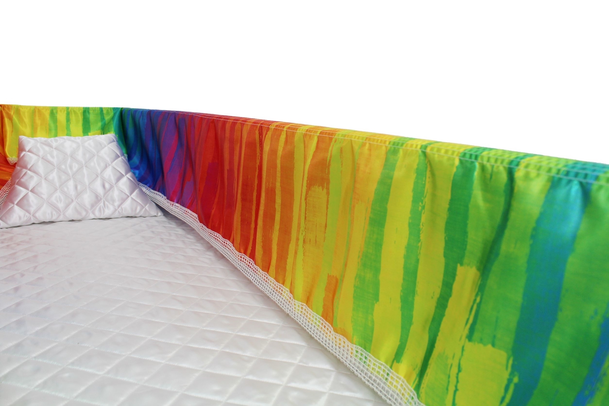 Luxury Satin 18-inch 2-way frill consisting of a 12-inch internal frill with an additional 6-inch exterior frill. The chosen design will be printed on the 18" 2-Way Frill. Please note the image shows a mattress and a pillow which are NOT included. Image is to illustrate style of Interior Only.