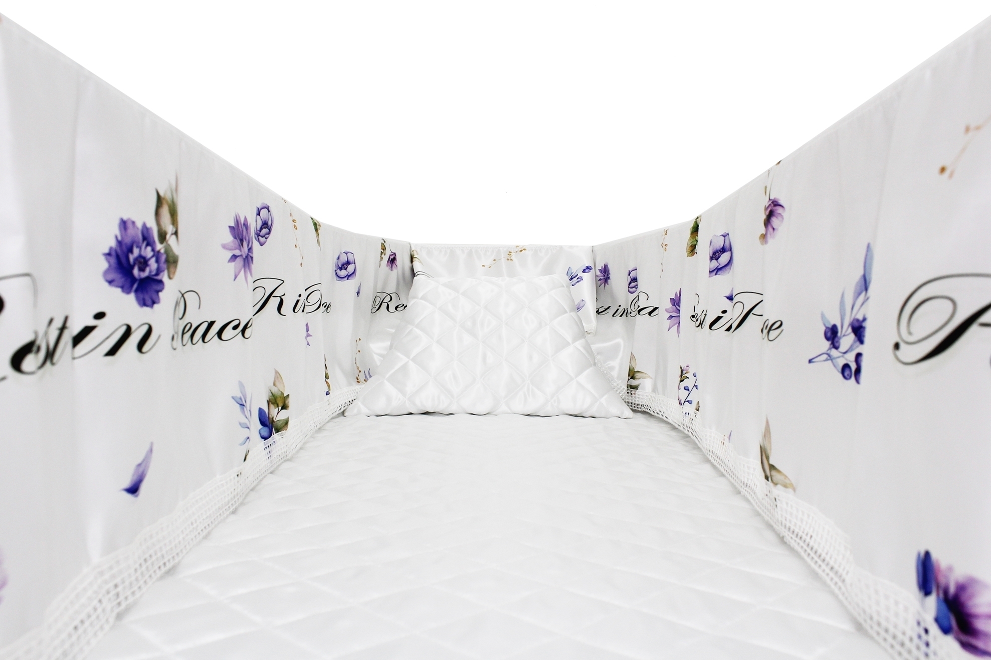 Luxury satin interior printed using water-based ink. The printed interior set consists of a 12-inch printed satin frill, printed satin facecloth, quilted satin pillow and a quilted satin mattress.