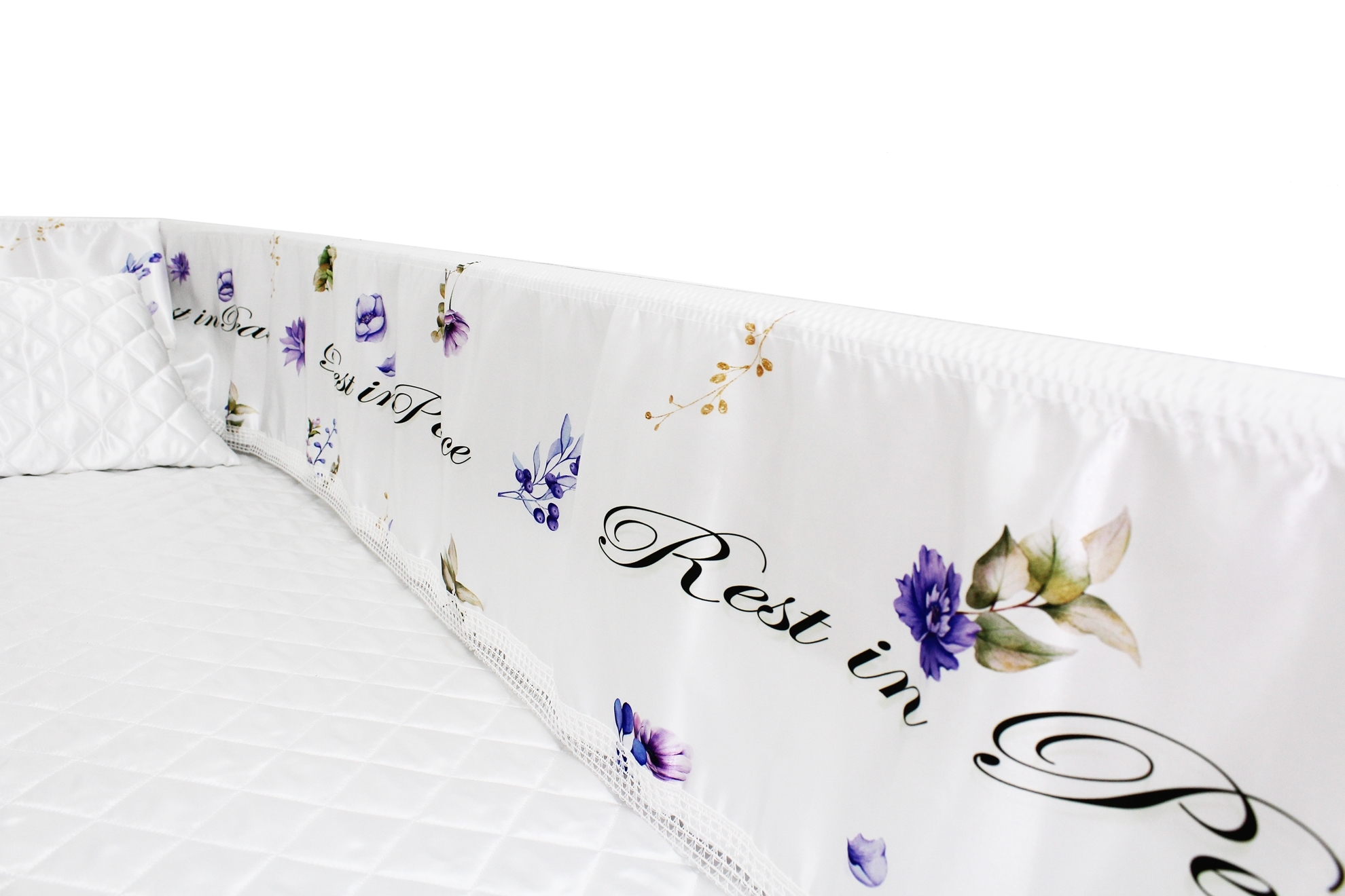 12-inch Printed Satin frill to be attached to the lip of the coffin/casket. Please note the image shows a mattress and pillow which are NOT included.