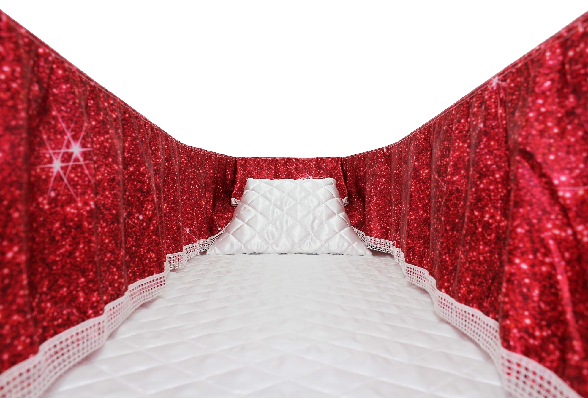 12-inch Printed Satin frill to be attached to the lip of the coffin/casket. Please note the image shows a mattress and pillow which are NOT included.