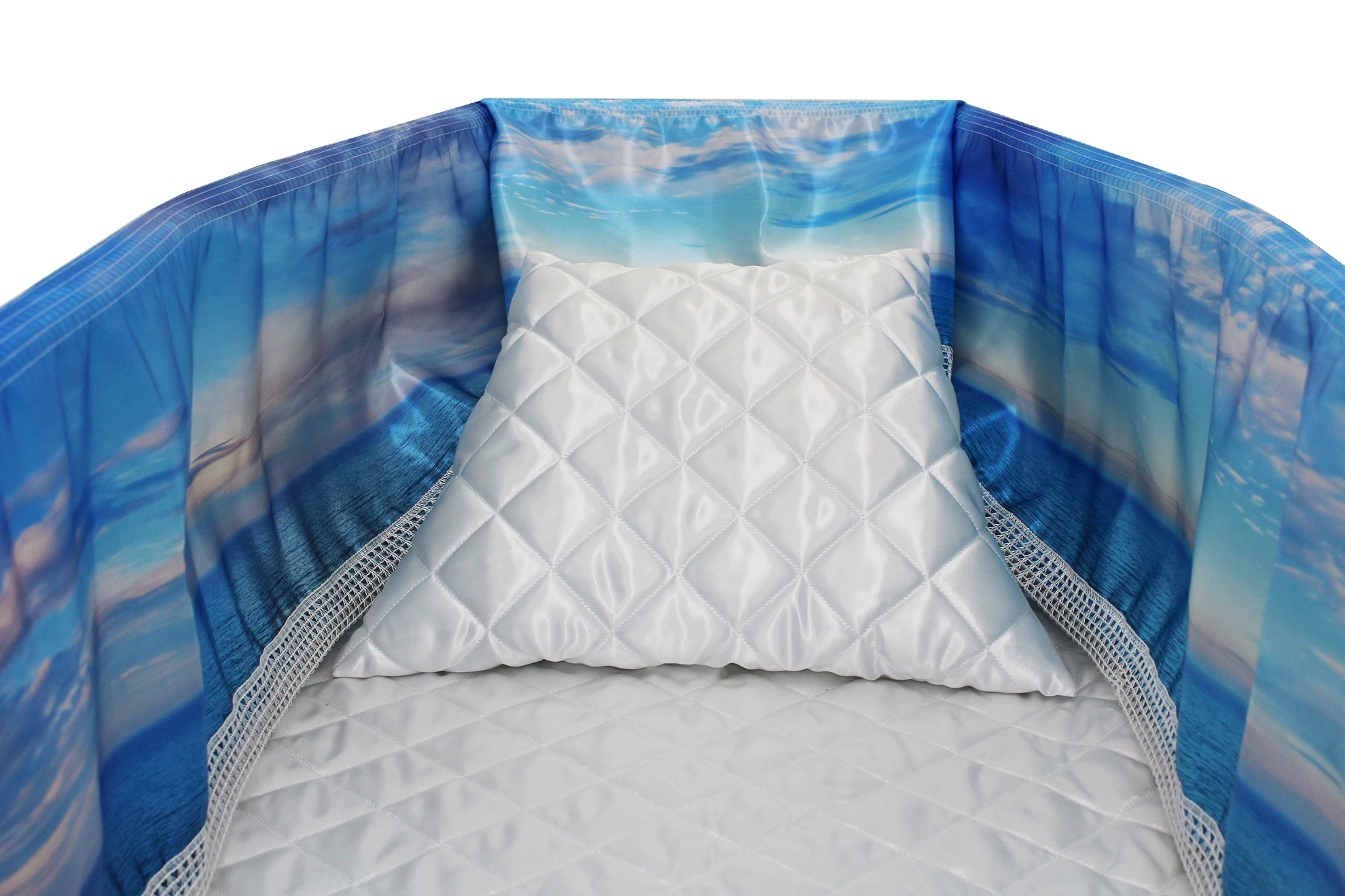 12-inch Printed Satin frill to be attached to the lip of the coffin/casket. Please note the image shows a mattress and pillow which are NOT included.
