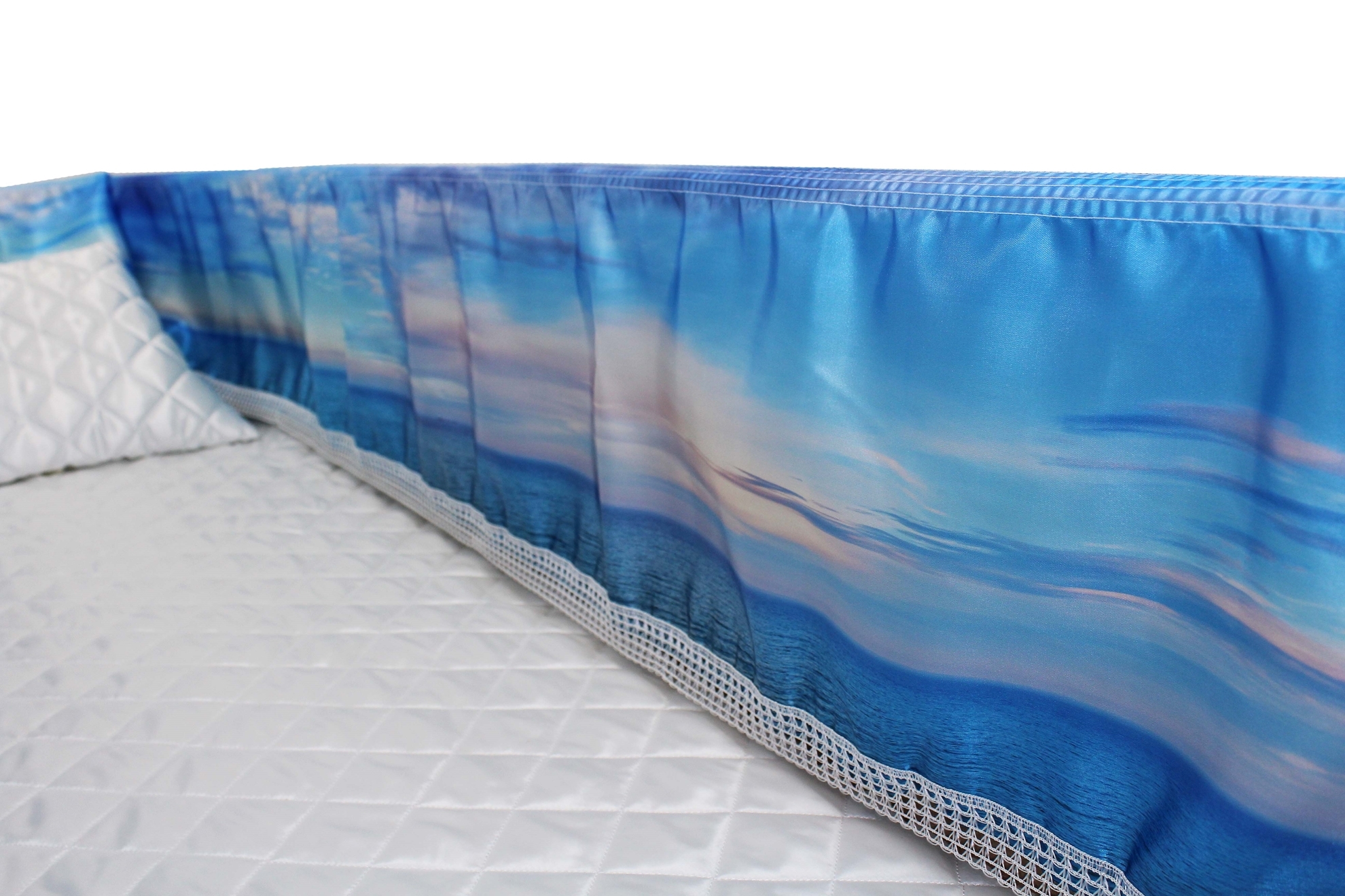 Luxury Satin 18-inch 2-way frill consisting of a 12-inch internal frill with an additional 6-inch exterior frill. The chosen design will be printed on the 18" 2-Way Frill. Please note the image shows a mattress and a pillow which are NOT included. Image is to illustrate style of Interior Only.
