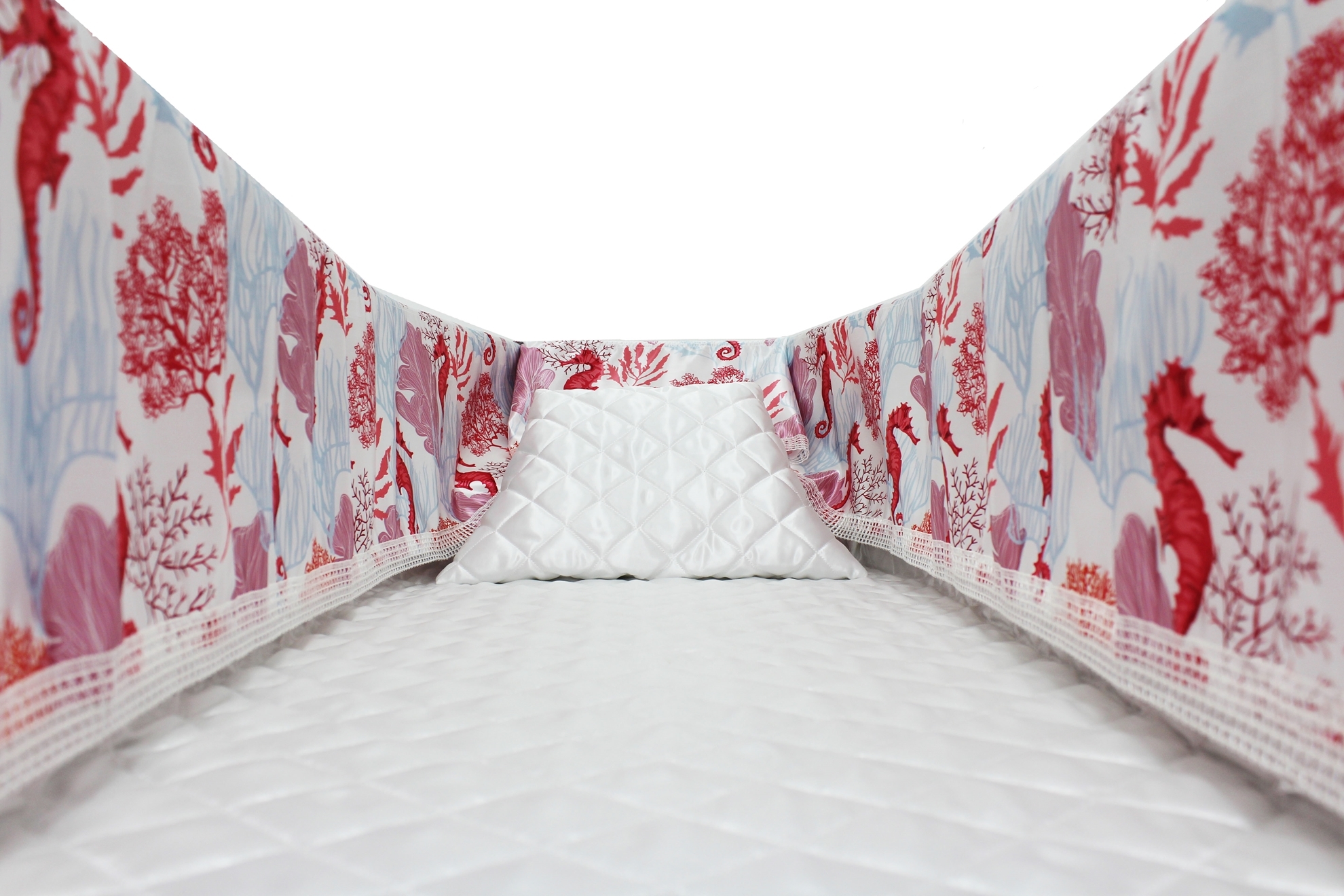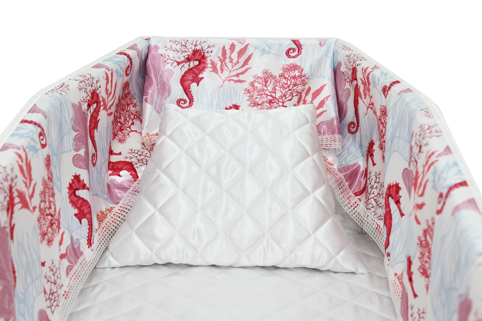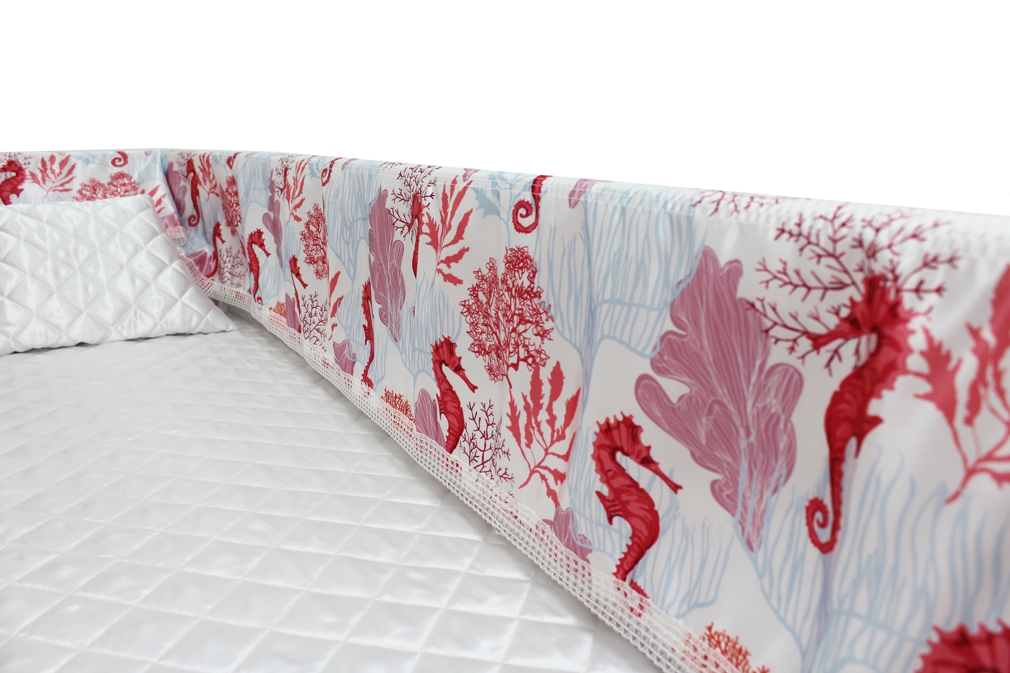 Luxury Satin 18-inch 2-way frill consisting of a 12-inch internal frill with an additional 6-inch exterior frill. The chosen design will be printed on the 18" 2-Way Frill. Please note the image shows a mattress and a pillow which are NOT included. Image is to illustrate style of Interior Only.