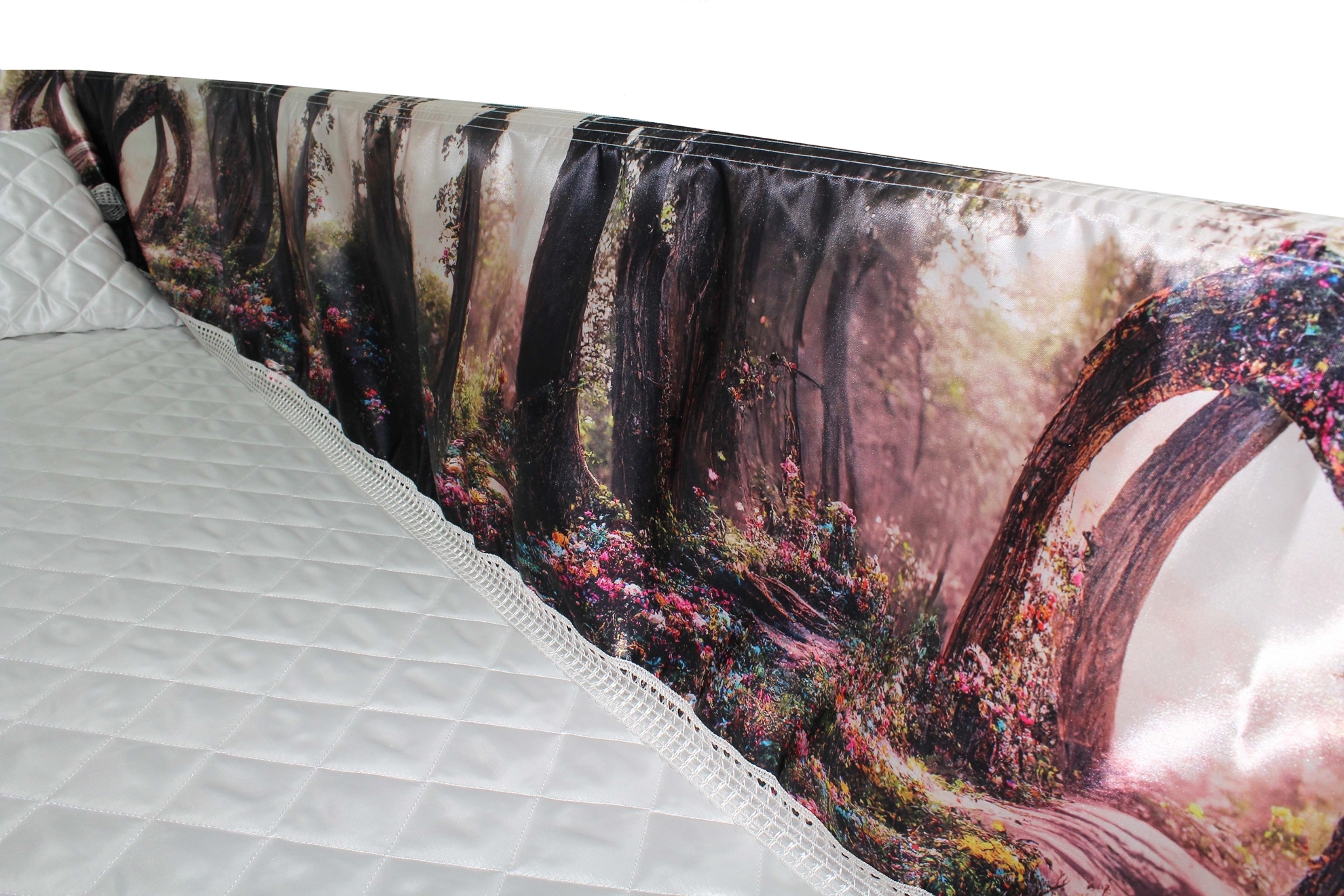 Luxury Satin 18-inch 2-way frill consisting of a 12-inch internal frill with an additional 6-inch exterior frill. The chosen design will be printed on the 18" 2-Way Frill. Please note the image shows a mattress and a pillow which are NOT included. Image is to illustrate style of Interior Only.