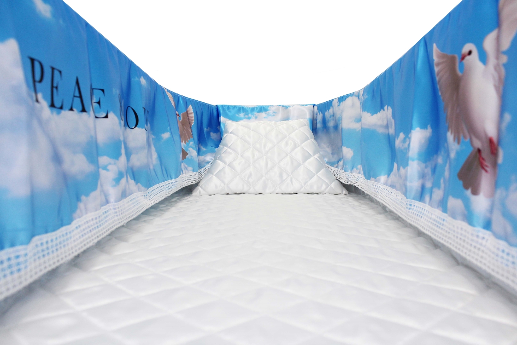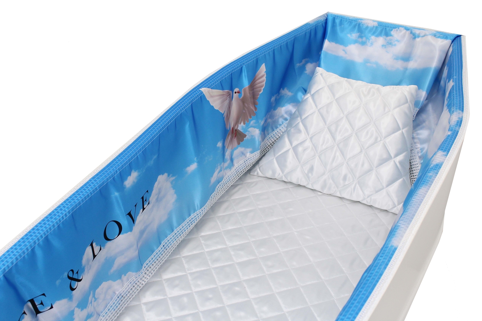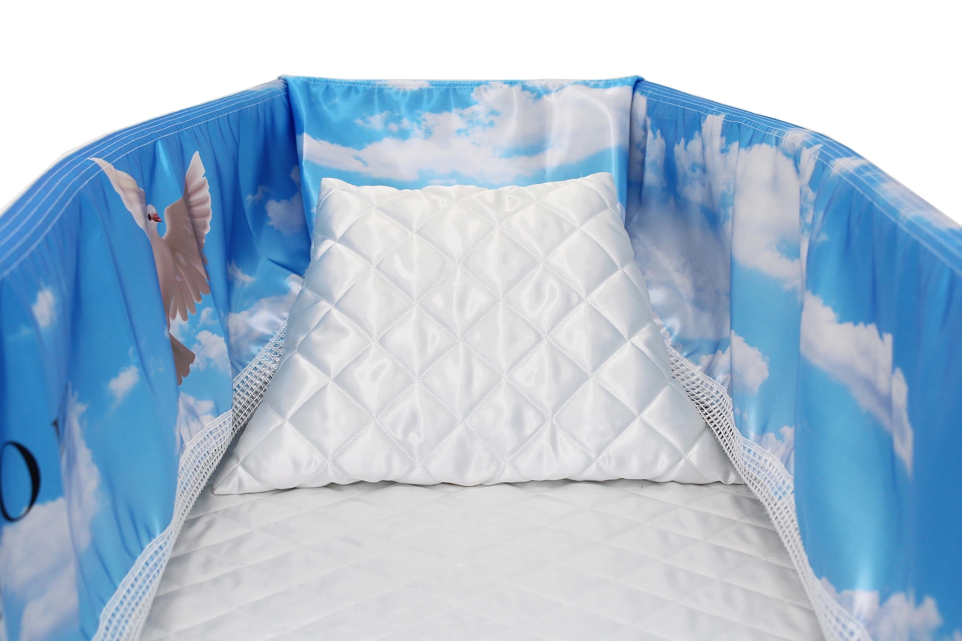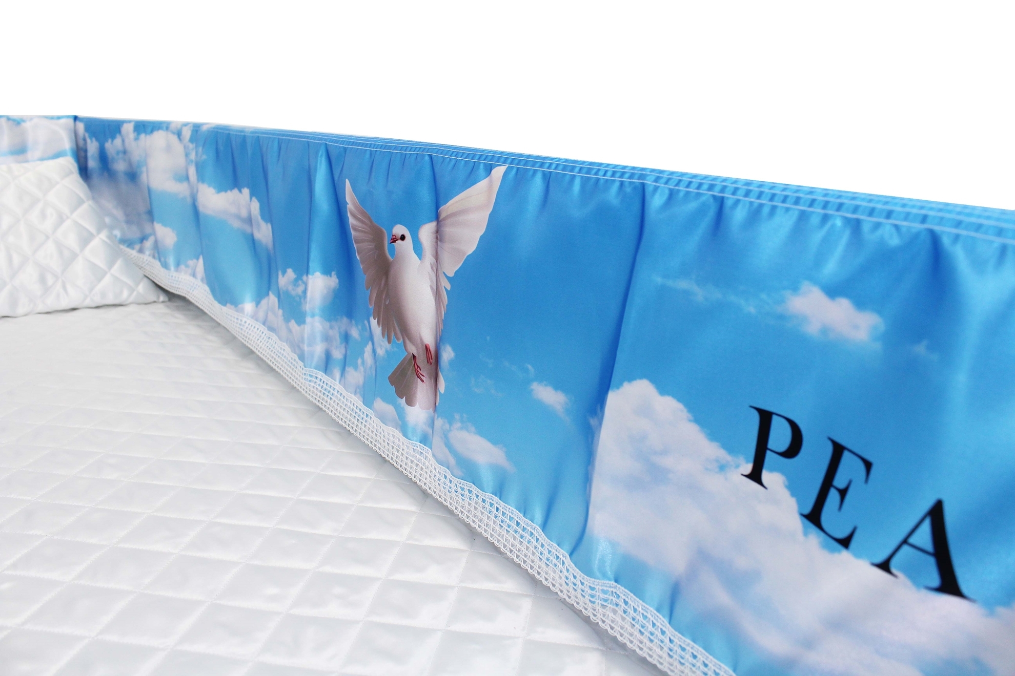12-inch Printed Satin frill to be attached to the lip of the coffin/casket. Please note the image shows a mattress and pillow which are NOT included.