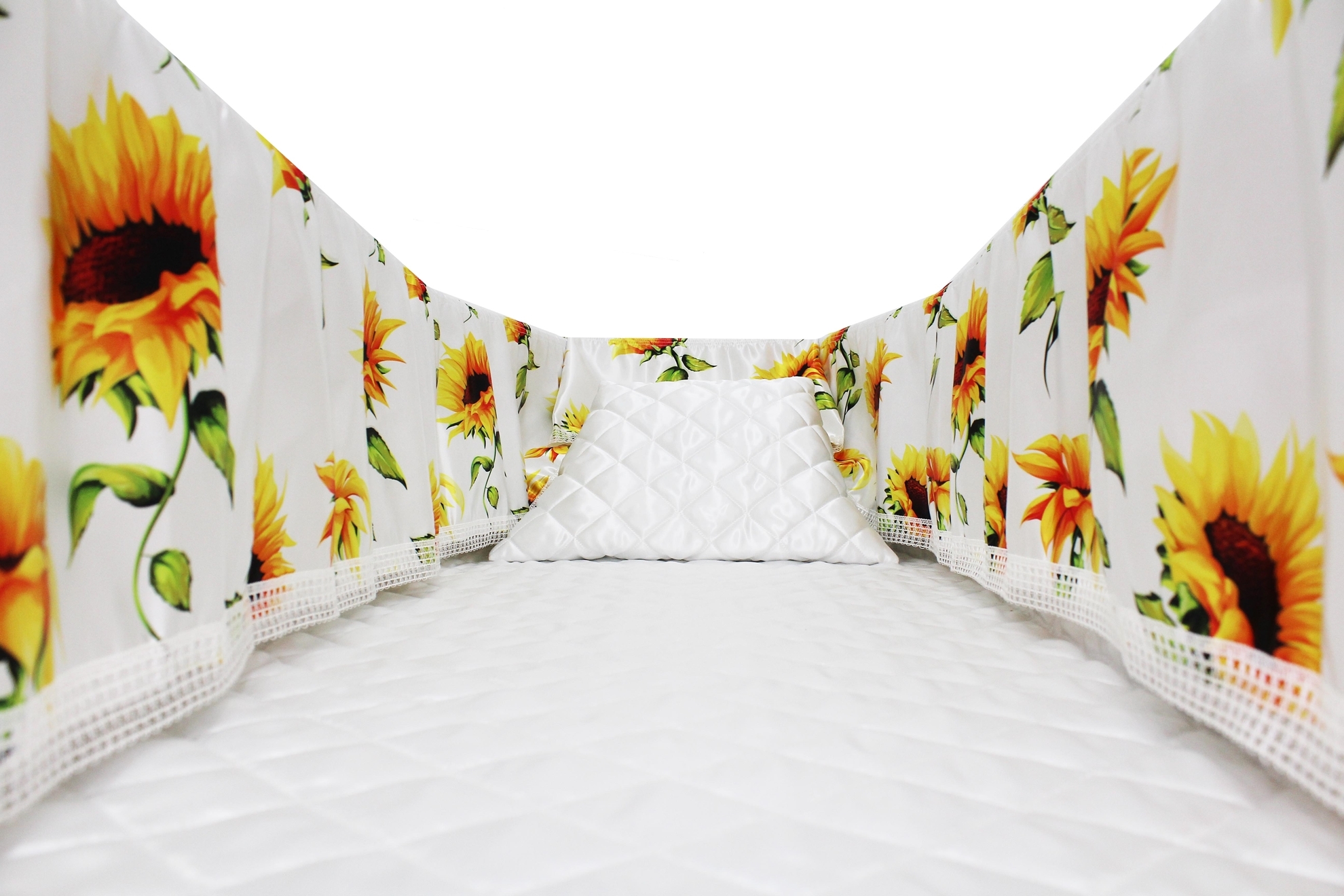 12-inch Printed Satin frill to be attached to the lip of the coffin/casket. Please note the image shows a mattress and pillow which are NOT included.