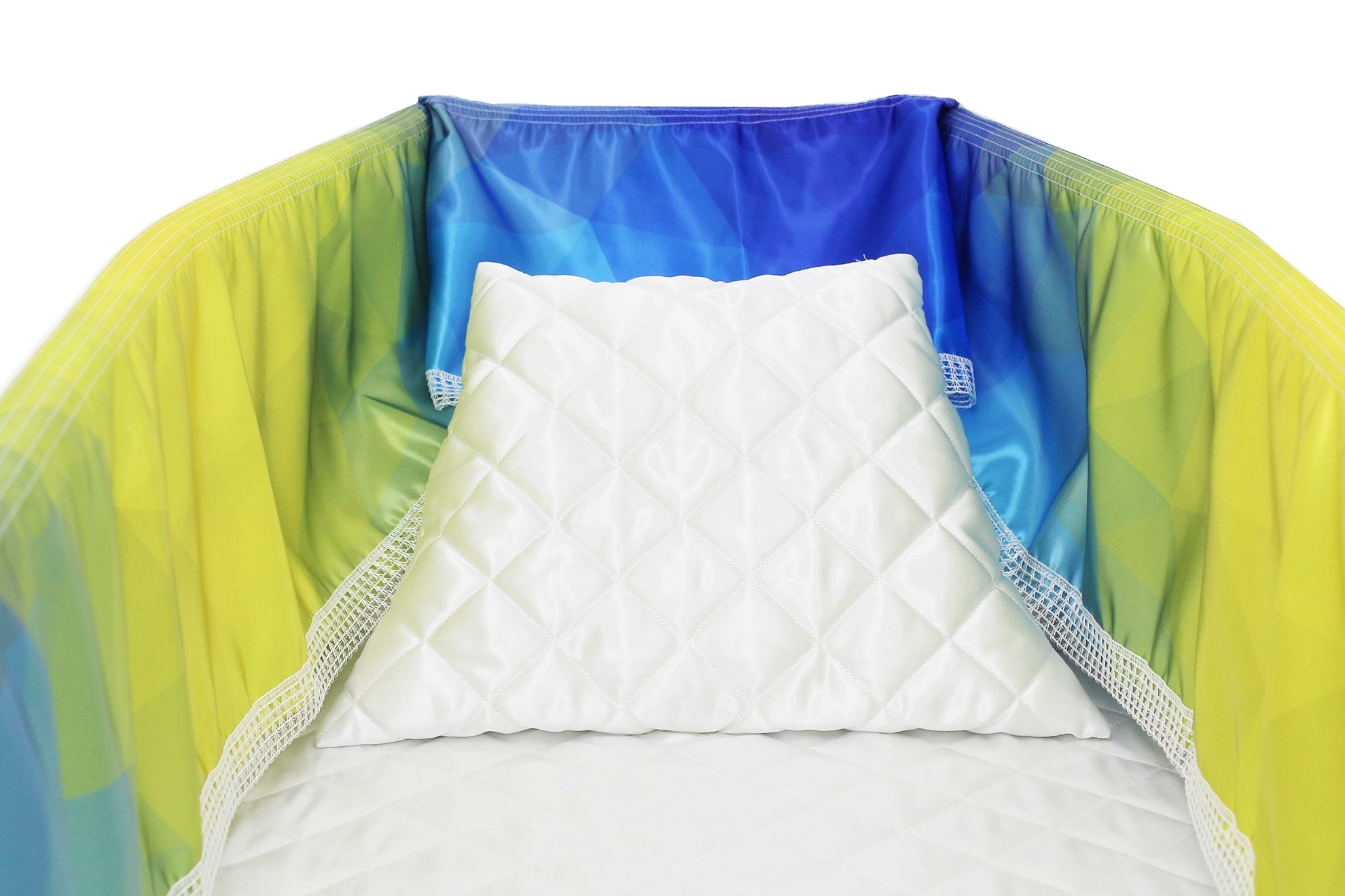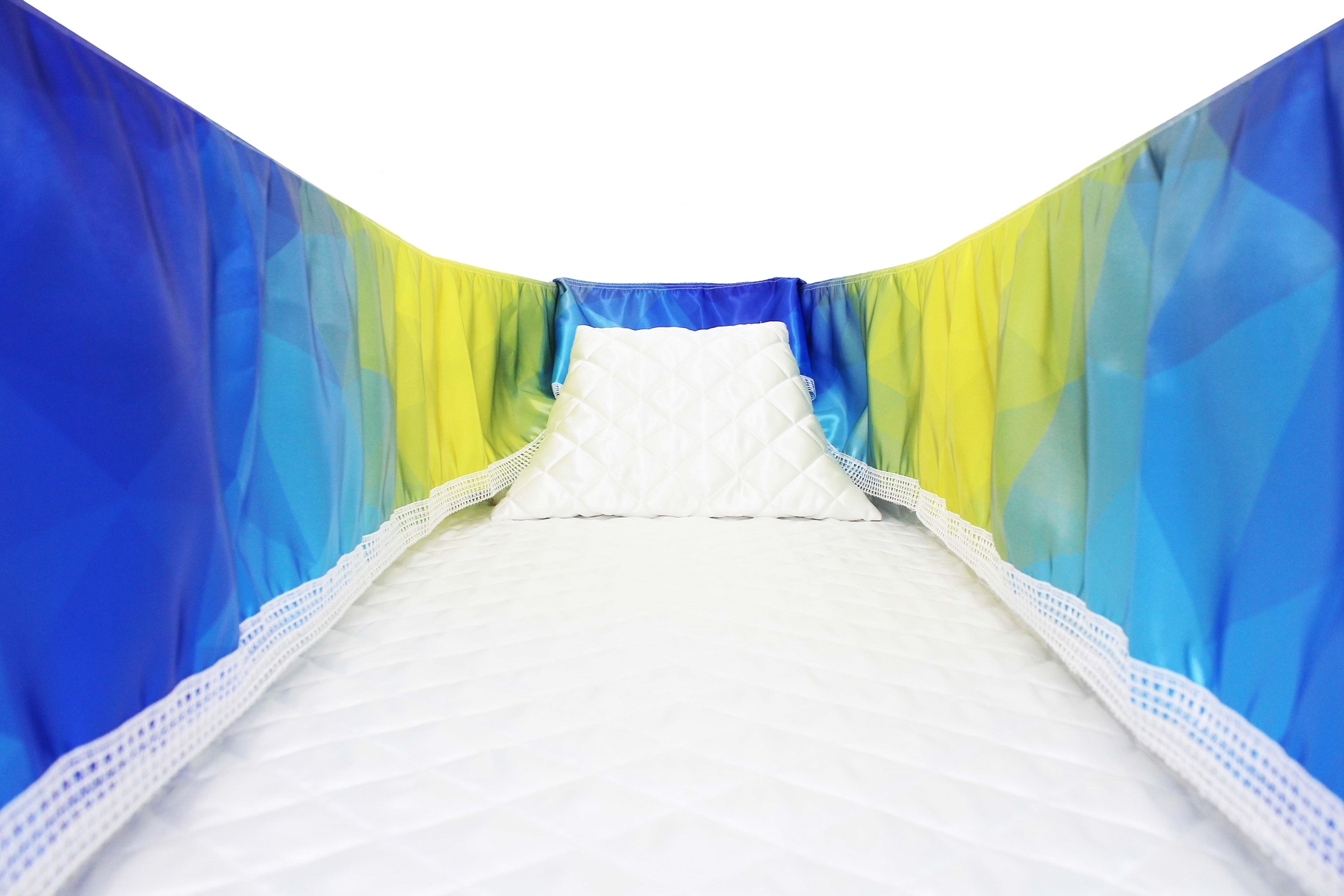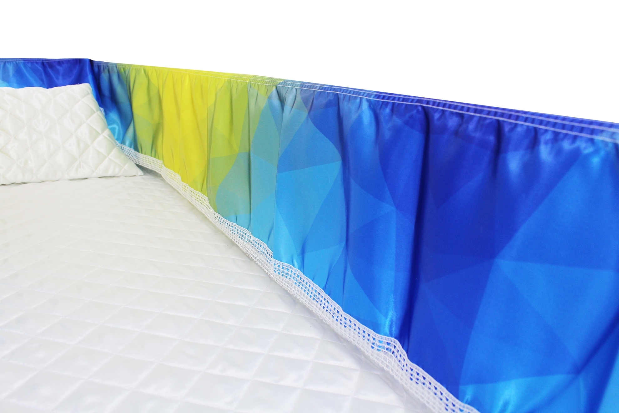 Luxury Satin 18-inch 2-way frill consisting of a 12-inch internal frill with an additional 6-inch exterior frill. The chosen design will be printed on the 18" 2-Way Frill. Please note the image shows a mattress and a pillow which are NOT included. Image is to illustrate style of Interior Only.