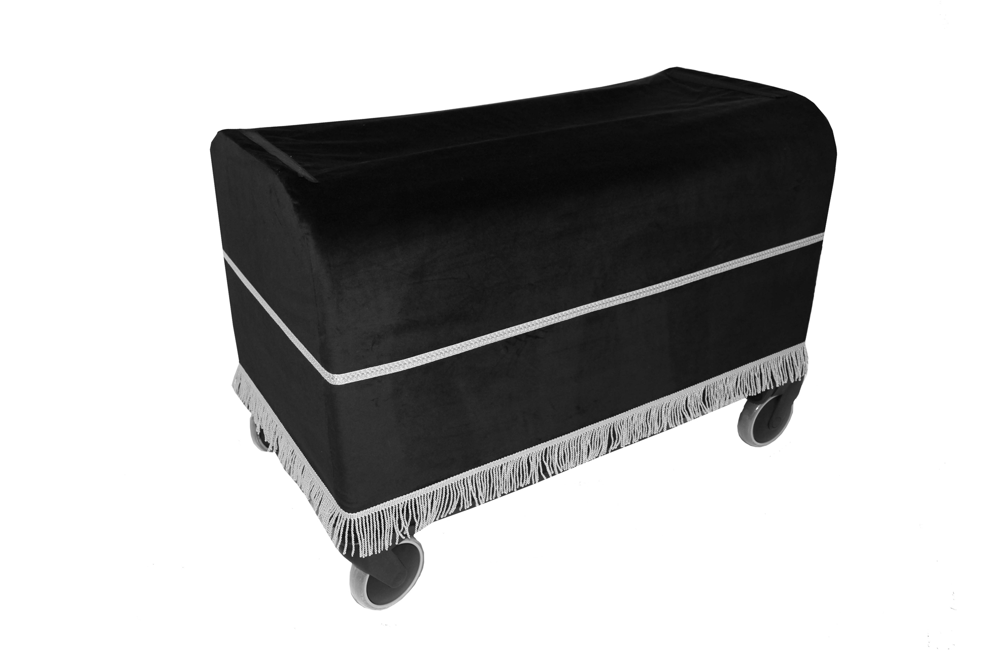 In quality soft velvet and finished to exceptionally high standards. Specifically designed to fit snuggly over a fixed bier trolley.