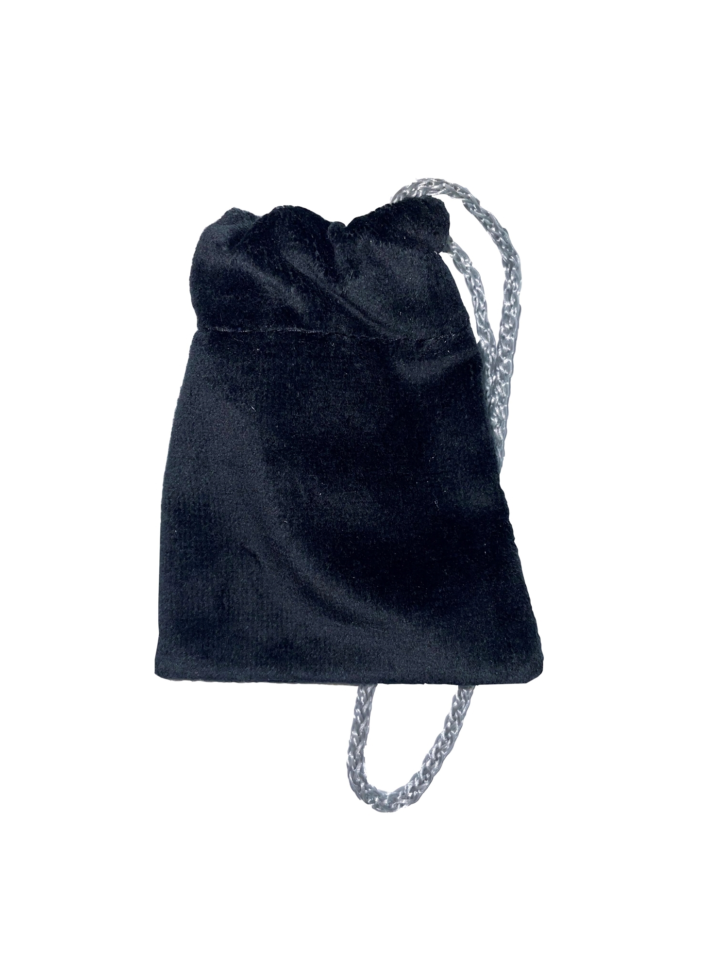 High quality 100% cotton velvet jewellery bag with a gold drawstring cord around the collar.