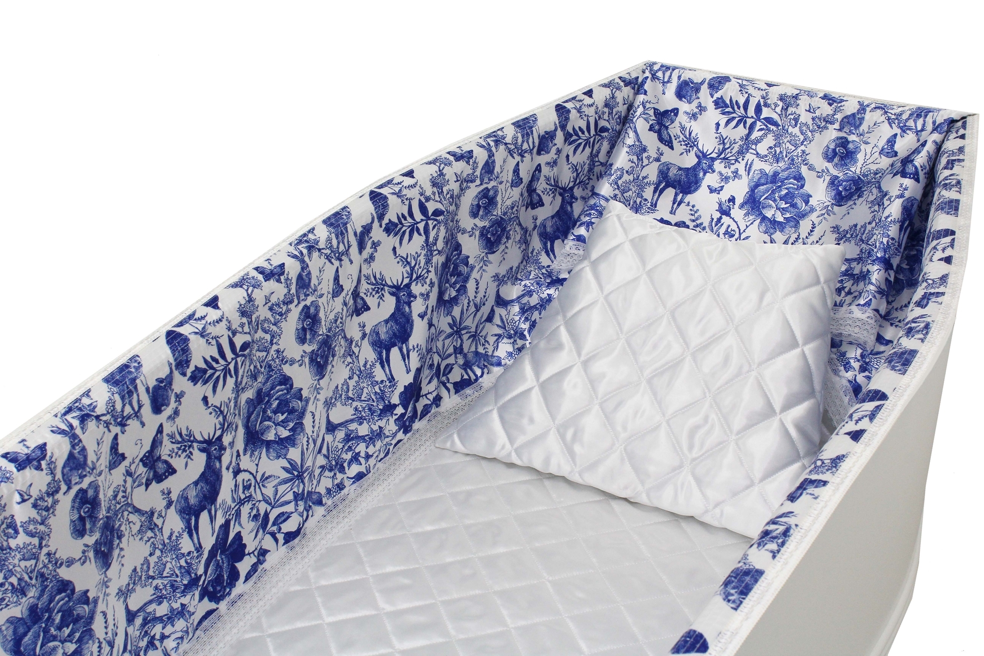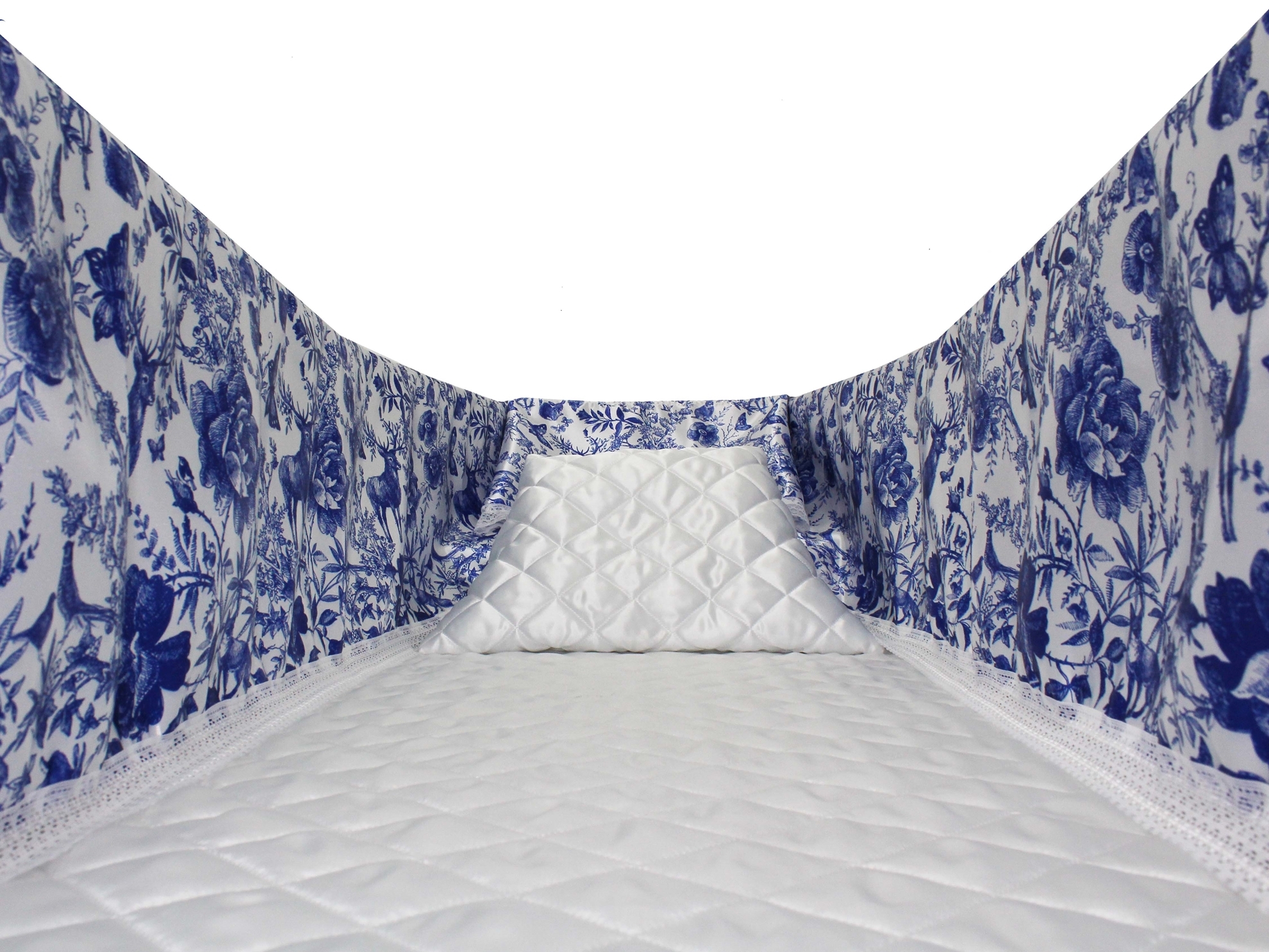 Luxury Satin 18-inch 2-way frill consisting of a 12-inch internal frill with an additional 6-inch exterior frill. The chosen design will be printed on the 18" 2-Way Frill. Please note the image shows a mattress and a pillow which are NOT included. Image is to illustrate style of Interior Only.